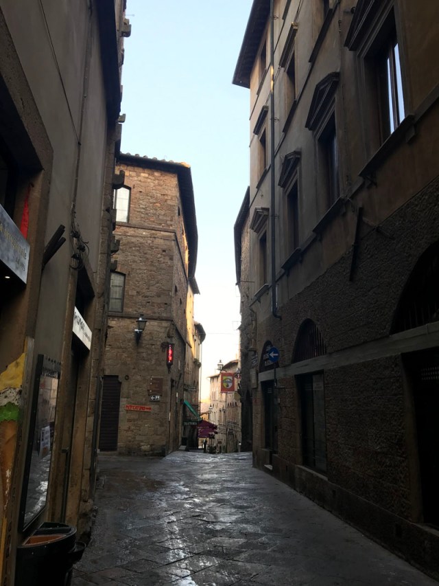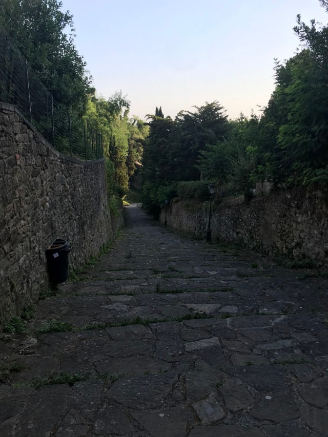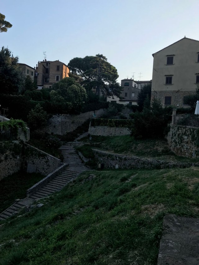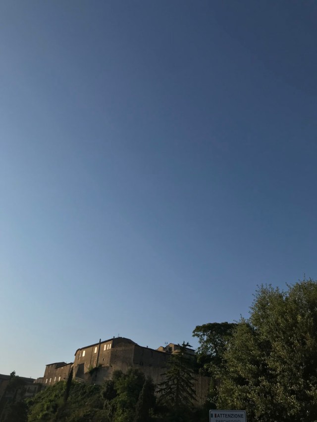 We had a bit of a kip after lunch, and then ventured outside again. We had to get wine refills. On the way, we stopped into a bookshop and antiquary to check what it had. We were greeted very enthusiastically by a thin man, who took it upon himself to talk rapidly in Italian to us, while miming everything he was saying. We told him we were Irish, and he showed us… no wait… he literally capered from shelf to shelf, indicating a map of Ireland with a shamrock-laden Leprechaun’s hat perched precariously on it; elsewhere, printed quotes by WB Yeats, one of which he discussed at length.