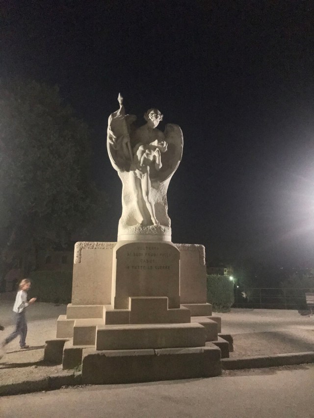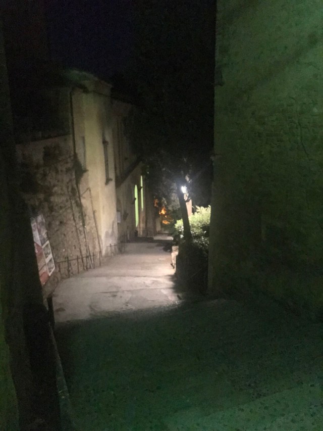 Later on that evening I went on patrol to check out what was happening about town. It was a lot quieter than it had been over the weekend! There was something going on in the pinacoteca (art gallery), but I’m not sure what it was. People were dressed-up a little and stopping to pick up a brochure at a table outside. I moved along, and somehow ended up with gelato from L’Isola del Gusto… don’t know how it happened, but I wasn’t complaining!