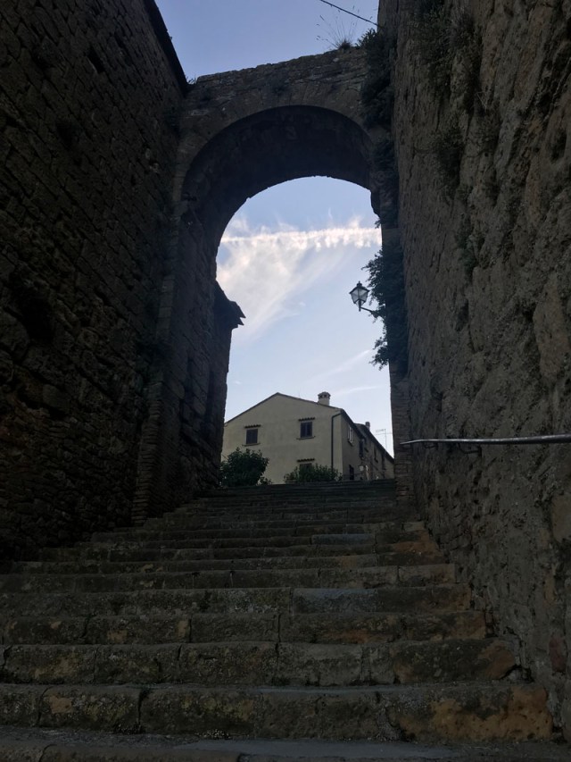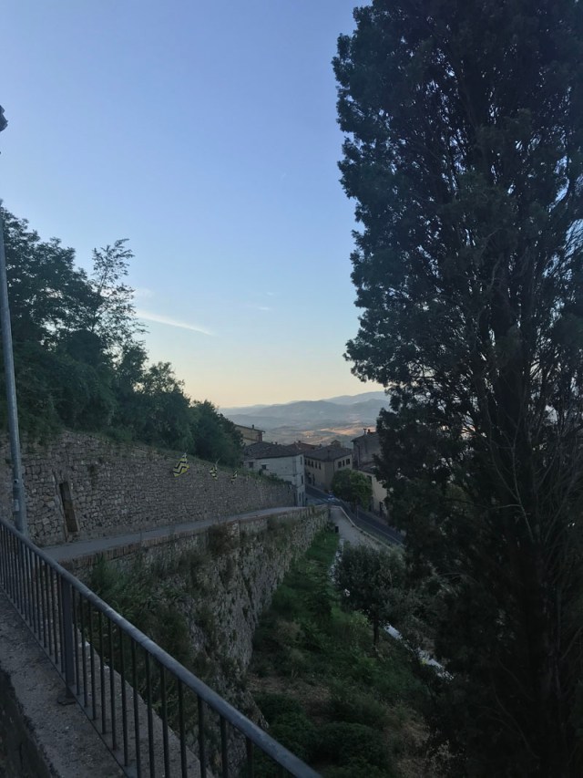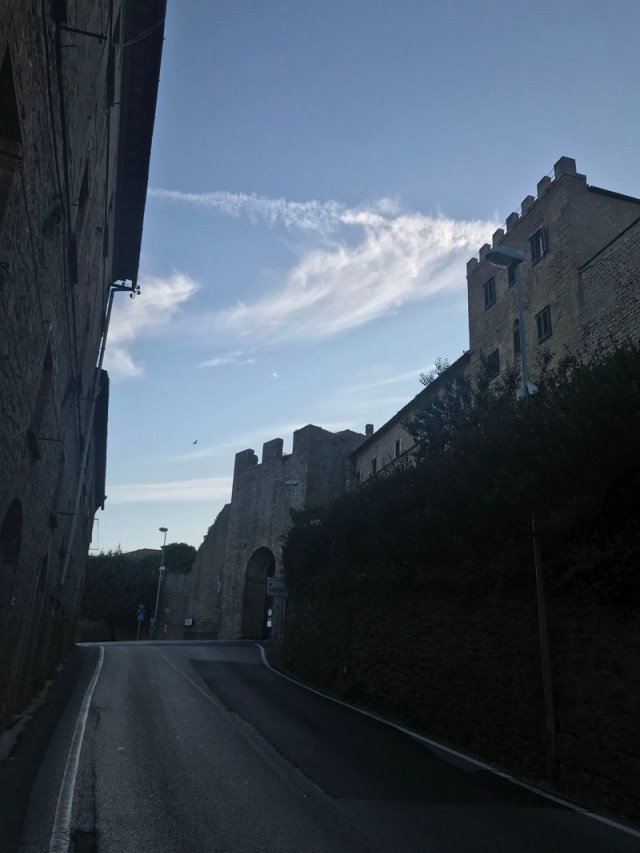 At around 14:15, thought, I grabbed a couple of sandwiches from La Sosta del Priore for lunch. Elena (I think that’s her name) knows me by name now – so that’s good service. I hope to return the favour and ensure I remember hers. On holidays, I get so fixated with sitting down in restaurants to get something to eat, when some of the best stuff you can find is street-food, and so it was a long time before I tried this place. Anyway, if you’re in the area and are peckish – give them a shot. Their Tripadvisor score is 4.5 after nearly 1,000 reviews. Anyway, I got a porchetta (roast stuffed pork) sandwich, with caramelised onions and pecorino. *Drool*