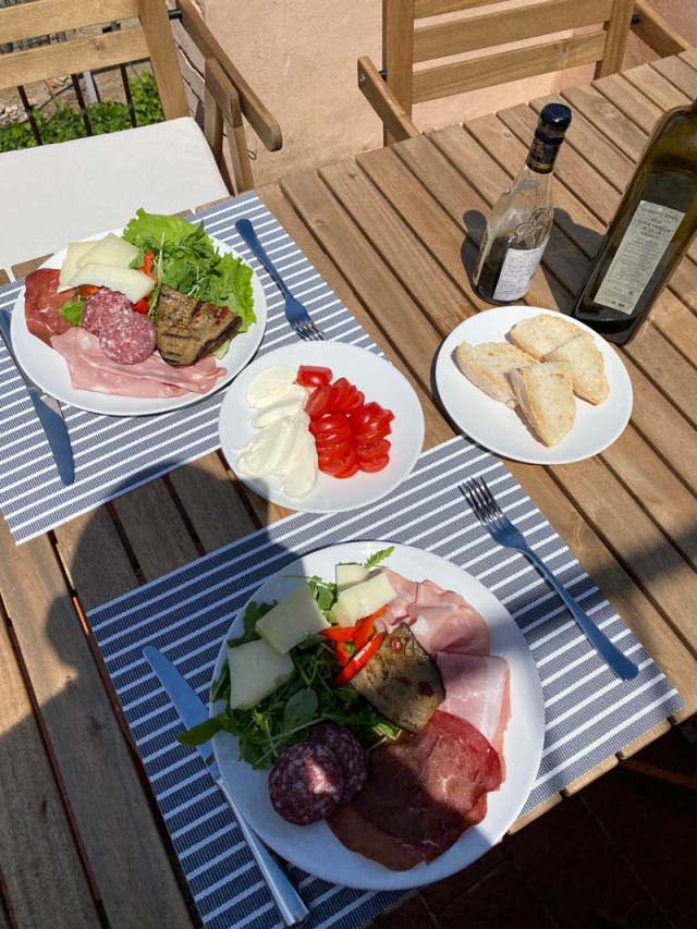 Well, I’m jiggered if I know what we did the first Sunday we spent! Pretty sure we didn’t go to mass. But anyway, we had lunch in the apartment – a selection of cheeses and salumi. That’ll do!