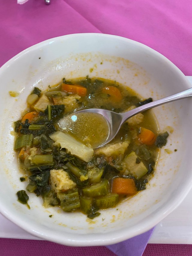 Anyway, for lunch I remember going out to what I would have considered a fast-food style cafe near us. I walked in, missed the step and nearly jarred/dislocated my knee. That was sore and humiliating. Anyway, I had their Zuppa alla Volterrana, for a good bit better than you get it in regular restaurants. And I was super-impressed. Get in me, veggies!
