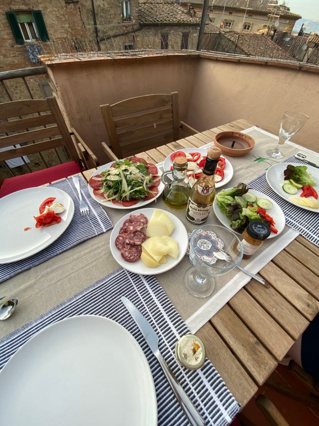 We spent some time cooling off (as best as you can in a space with no air-conditioning) back at the apartment, and then had a simple dinner of cold-cuts and salad back on the terrace.