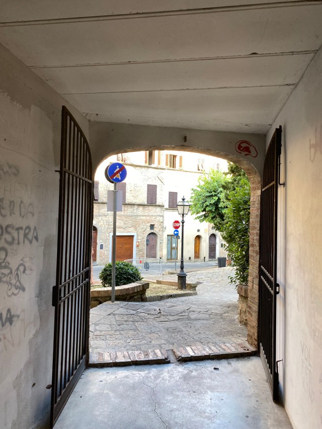 Near Porta San Francesco, there’s a small square, Piazza Marcello Inghirami. Tucked inside one of its corners there’s a modern-looking covered laneway, which leads to Viale Franco Poretti, where the main residents carpark and the Roman theatre ruins lie. It used to be covered in graffiti, but it looks like they coated over most of it. I’m conflicted by this, as some street art can be amazing, but I don’t have any strong memories of anything jumping out at me. But I hope they allow controlled access to the more serious street artists this time around.