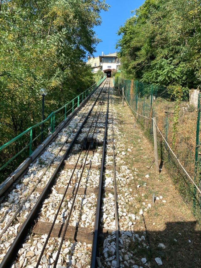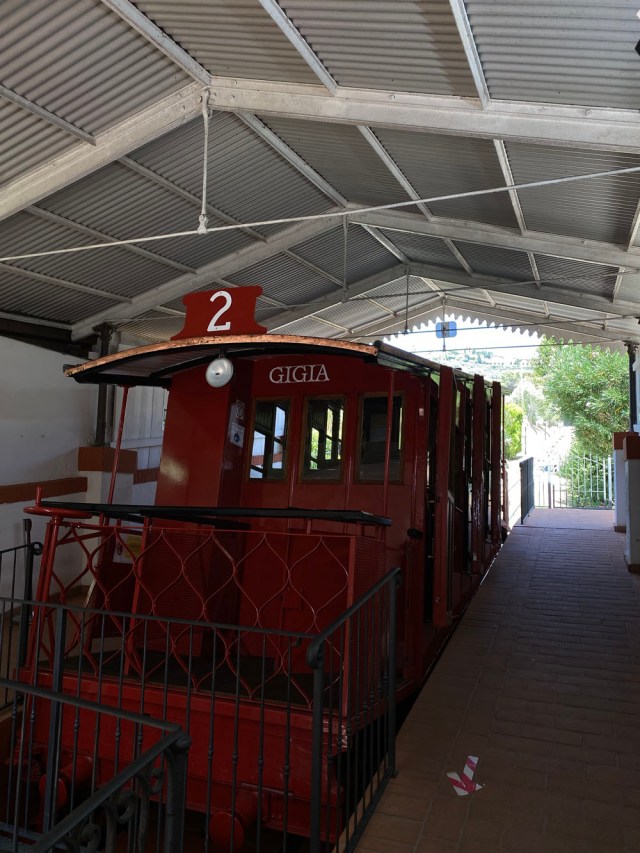 We just missed the funicular back down, but were happy to wait the 15 minutes for the next one. Lovely views, and it was great to see families, three generations, all out and being normal during this crisis. We headed back down, opting to stand outside the hindmost carriage.