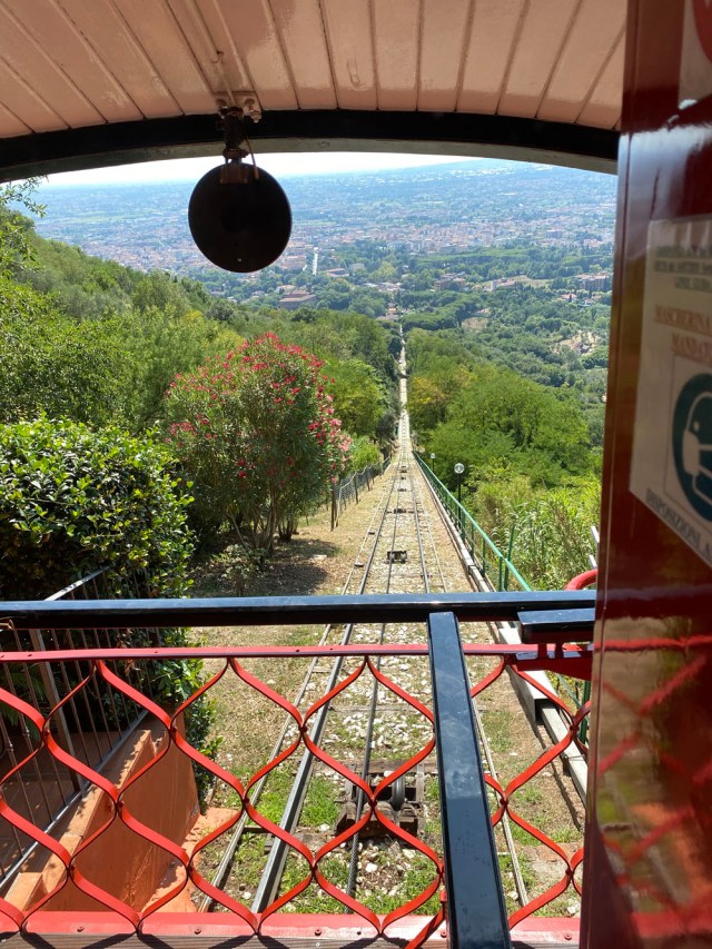 We bought our return tickets, and then had a 10-15 minute wait for the next funicular. Once on, I began filming. And here’s the unfortunate part. When I was done with the day’s filming I transferred the Pink Floyd tribute act movies (see later) to my laptop so I could edit the movie for YouTube. Then I purged my phone to ‘free up space’, which I really didn’t need to do. Unfortunately, that meant I ended up deleting all the Montecatini footage, and I was back home in Ireland when I discovered this. I cursed myself for a fool. On the other hand, it means I very much have a valid reason to return someday soon!
