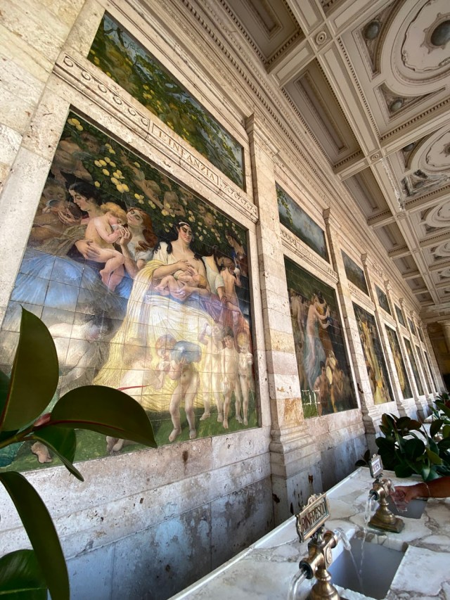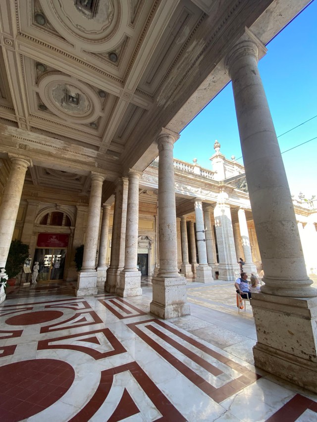 The next stop was the neo-Romanesque spa in the new part of town which gives it the monicker ‘Terme’. We were blown away by it the first time we were there, and it didn’t disappoint 13 years later. I think it was €6 per person in, but you could have as much spa water as you wanted. There are several types, but the one most people were taking has an acquired sulpurous taste – no thanks. Instead, we had a mooch and went ‘oooh’ and ‘aaah’ a lot at the spotlessly clean architecture.