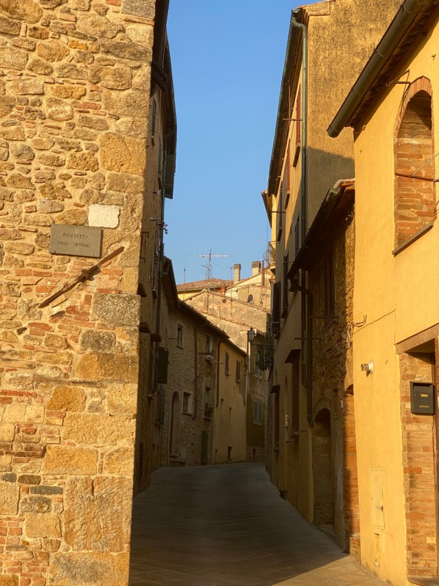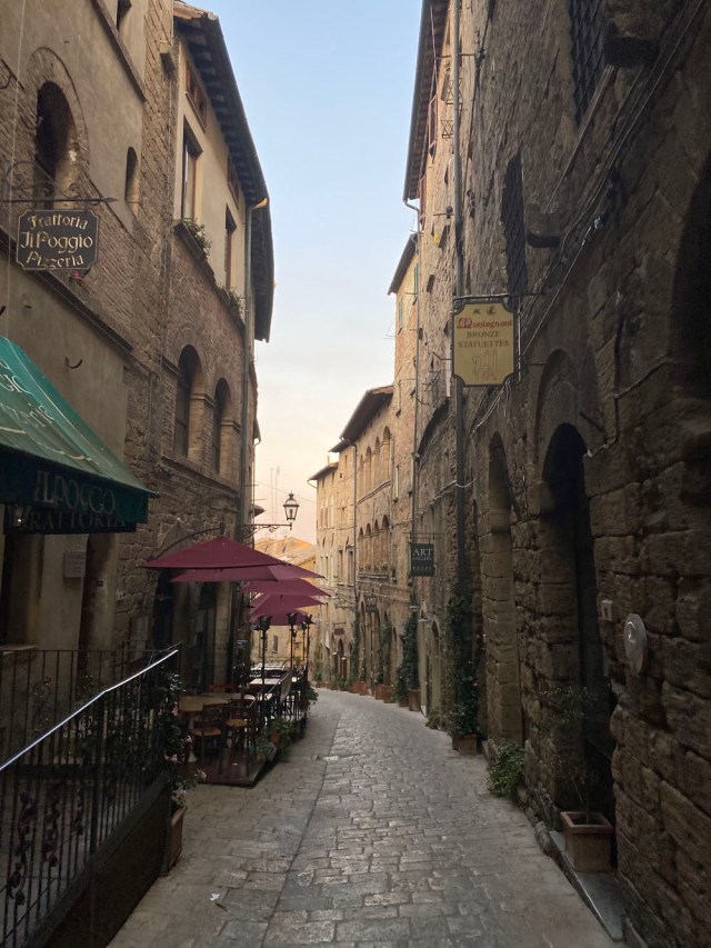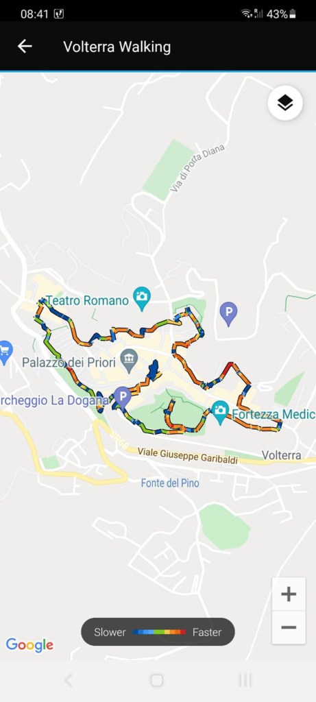 If I recall correctly, I actively sought hills on the inside of the walls we could go up and down for a cardiovascular challenge. There are no shortage of those in Volterra!