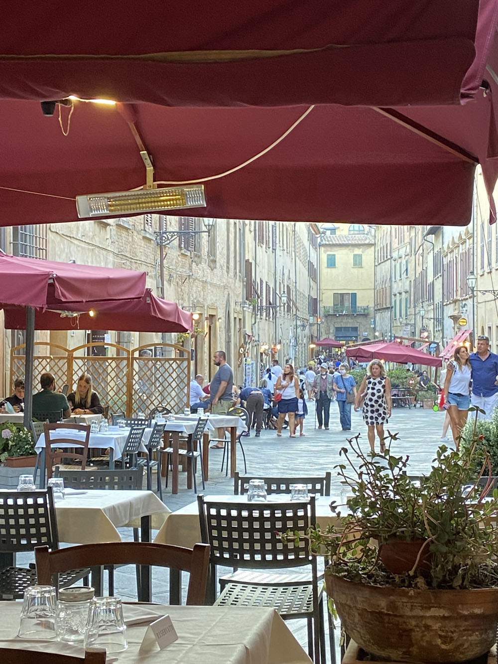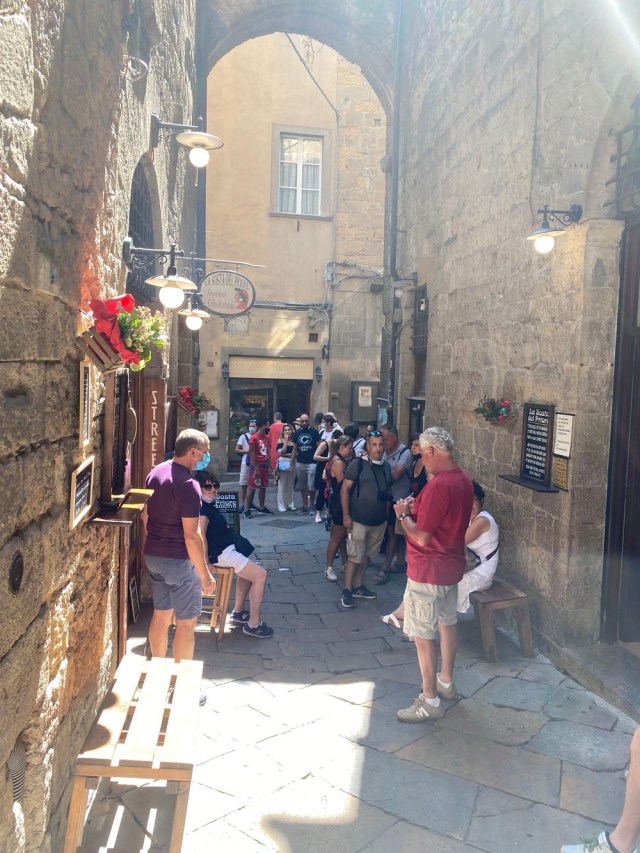 Getting a table without a booking was proving tricky in Volterra again this year. It wasn’t in 2019, but since the pandemic Volterra’s tourist numbers have risen. Fortunately, we were able to find a table for three in La Vecchia Lira at a pinch… it was the second-last table in the place.