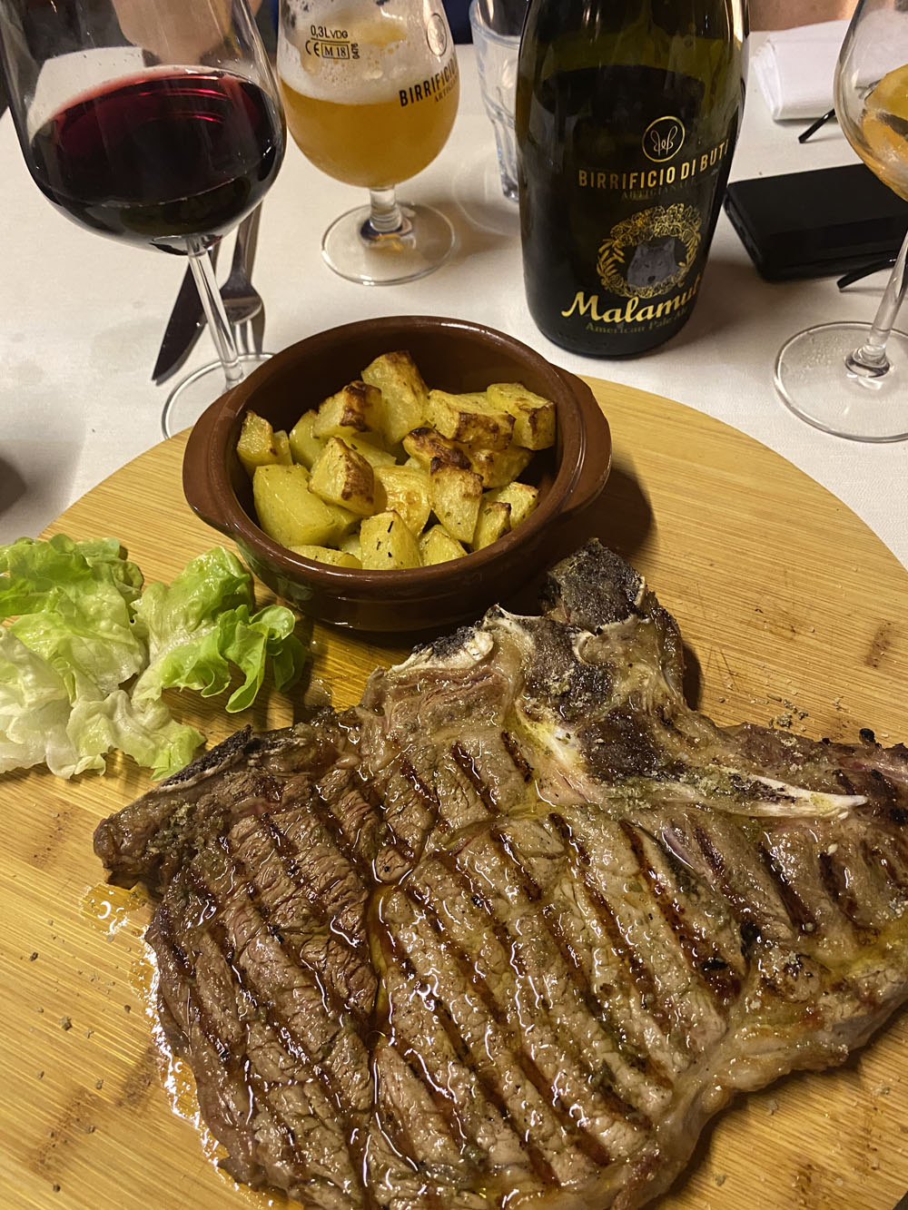 I got the Zuppa alla Volterrana, and a steak. Sadly, I can’t remember what the others had. However, what I *do* remember is what we drank. Niamh and I each had 500ml (un mezzo) of white and red, respectively. My brother isn’t a wine drinker, and the restaurant only had craft beers available, so he opted for one of those.