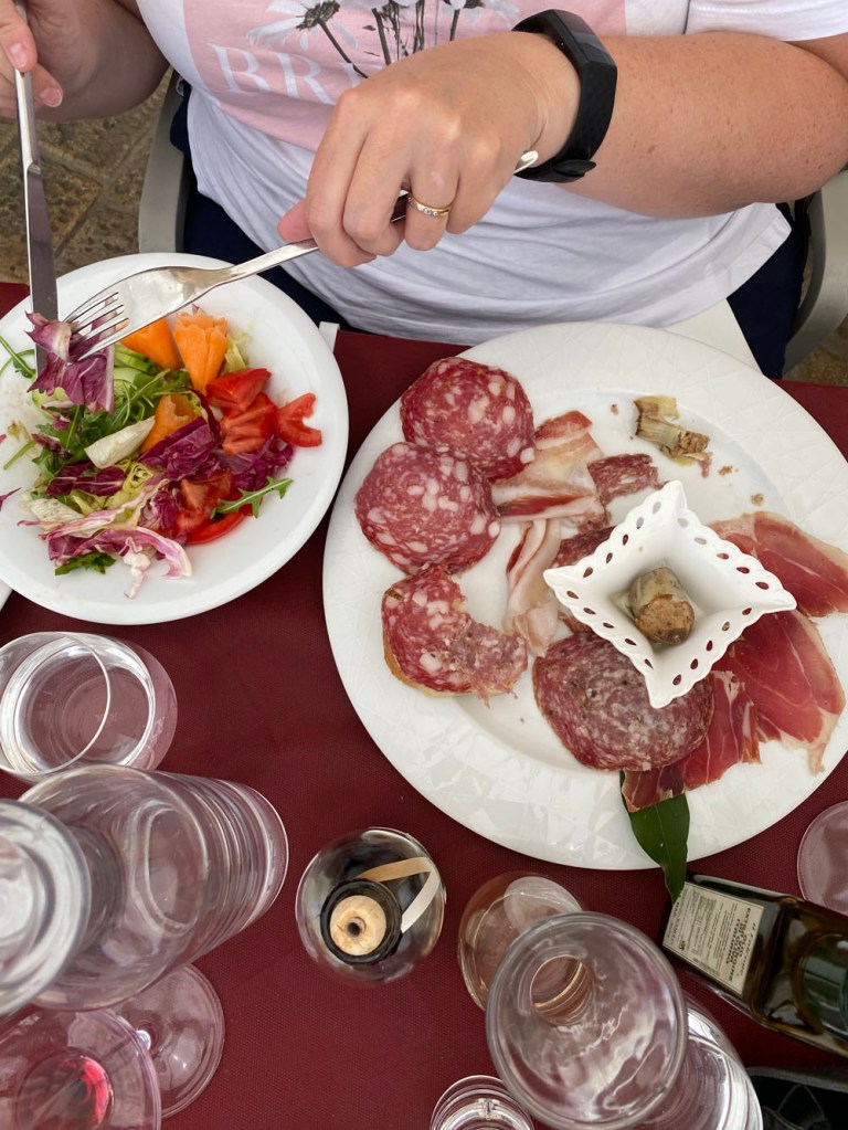 I can’t get over how green the hills still were – althought it had signs that they were beginning to turn grey/brown. For lunch we went to a place to which we very infrequently go: I Ponti Volterra. I guess I consider it touristy given its location (by the main viewpoint). But sometimes anywhere new is good.