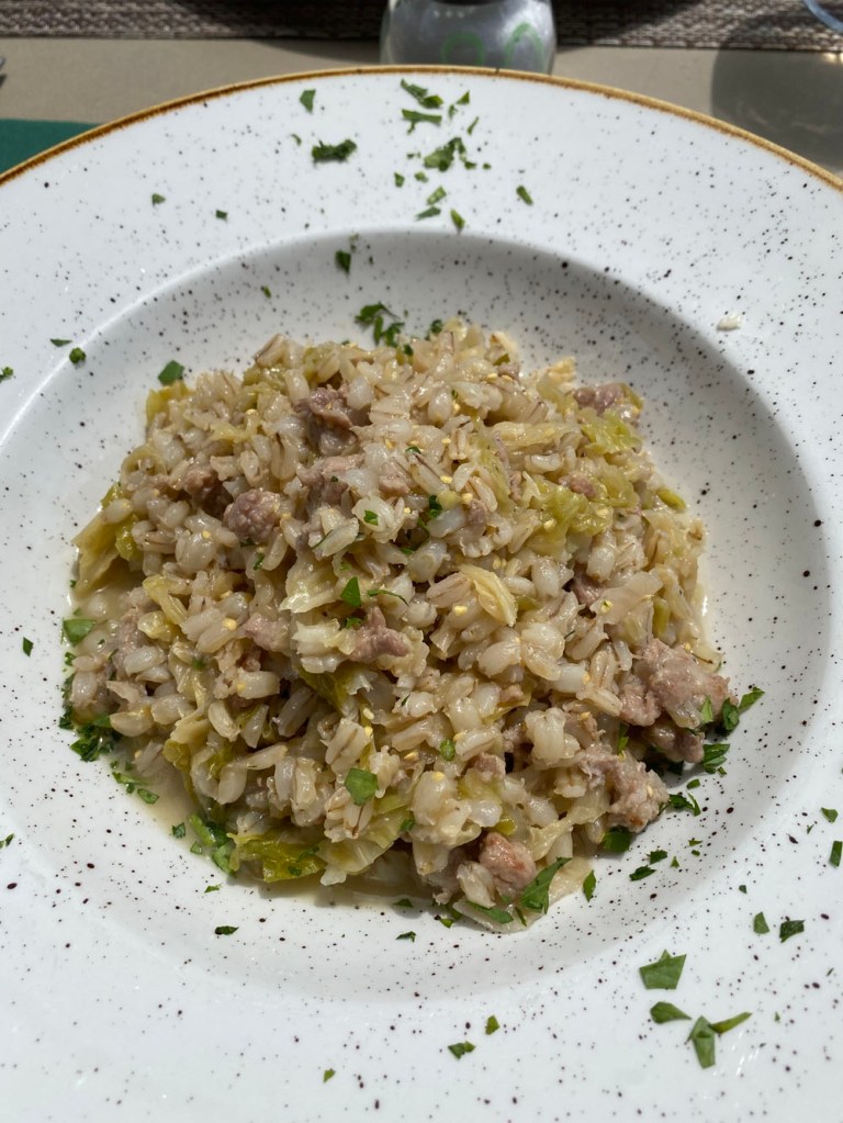 I was pleasantly surprised by the appearance of an Orzotto on the menu (think Risotto, but made with barley, instead of rice). I love them, but they’re damn hard to come by in Tuscany. Anyway, this one was made with sausage and cabbage. It tasted lovely, but… well… maybe my stomach was nervous on the day. Let’s just leave it at that. I’ll give it another go some day – if even just to test my, em, theory.