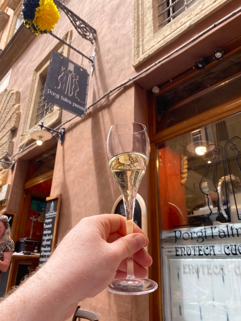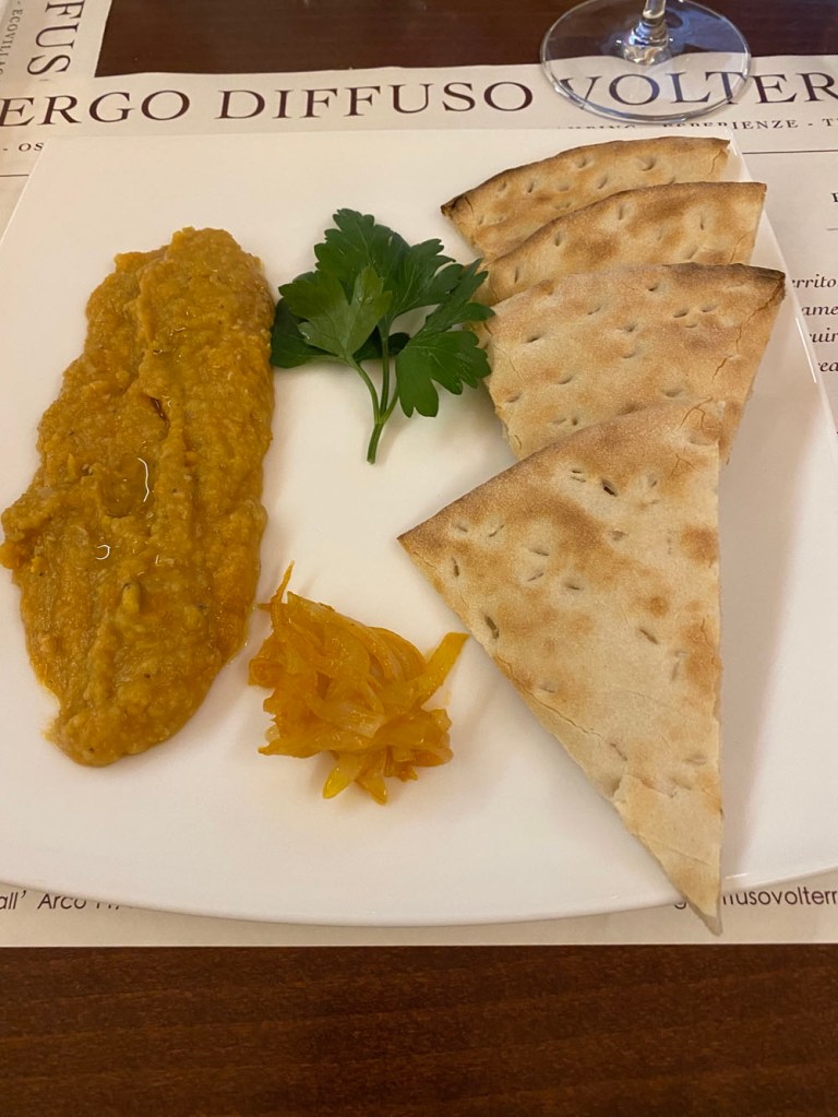 We carried on the theme of new places to eat (for us) that evening and ate in Life Bistrot, a plant-based restaurant at the top of the lovely Via Porta all’Arco. We were put sat in the half of the restaurant that doesn’t have the glass floors looking down on the Etruscan ruins. It gets good reviews on Google, so we thought we’d give it a bash. The service, it must be said, was friendly and their English excellent, if your Italian is lacking.