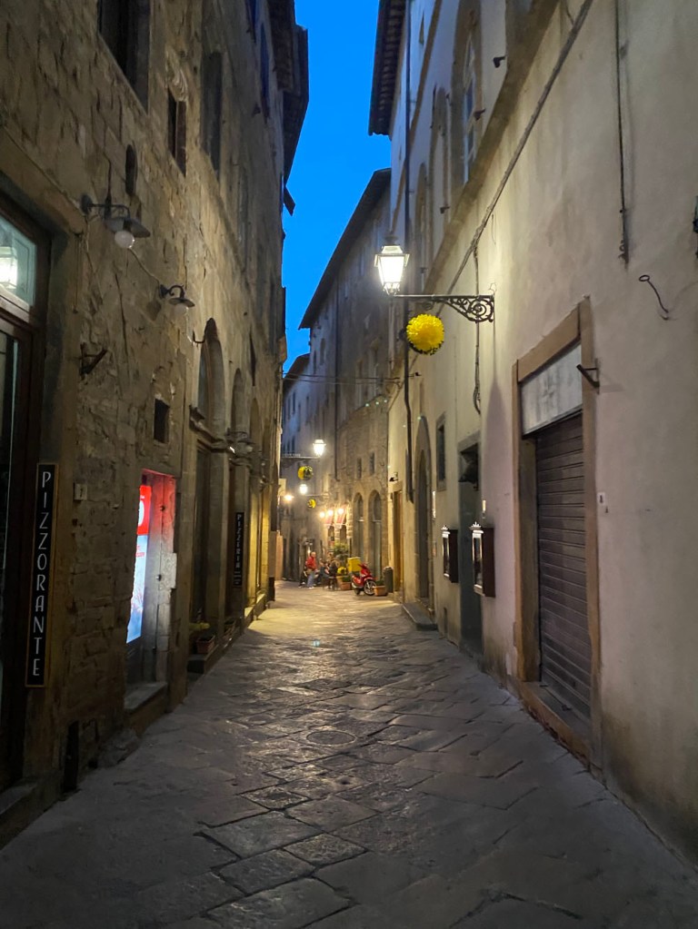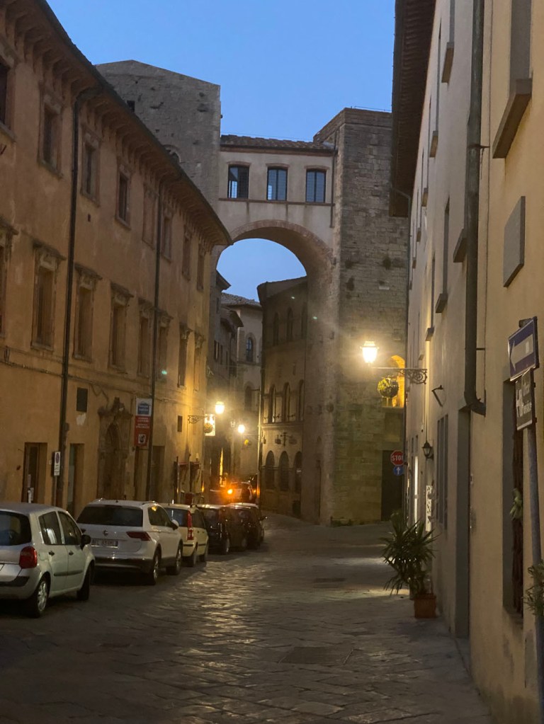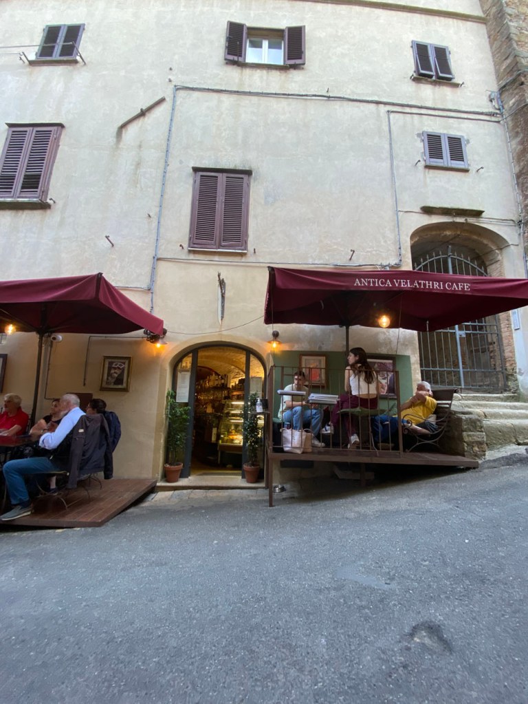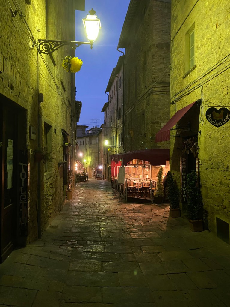 Later that evening for dinner, we did the touristy thing and ate in the main square, in Ristorante Etruria. The food there varies from ok to good, but they usually treat us to a half bottle of Chianti when we’re done with our meal. Tonight, the food was good! I kept up my veggies with Zuppa alla Volterrana, and followed that up with 4-cheese gnocchi. Niamh just had a carbonara. We enjoyed it so much that we had our second dessert of the day (or third, in my case!).