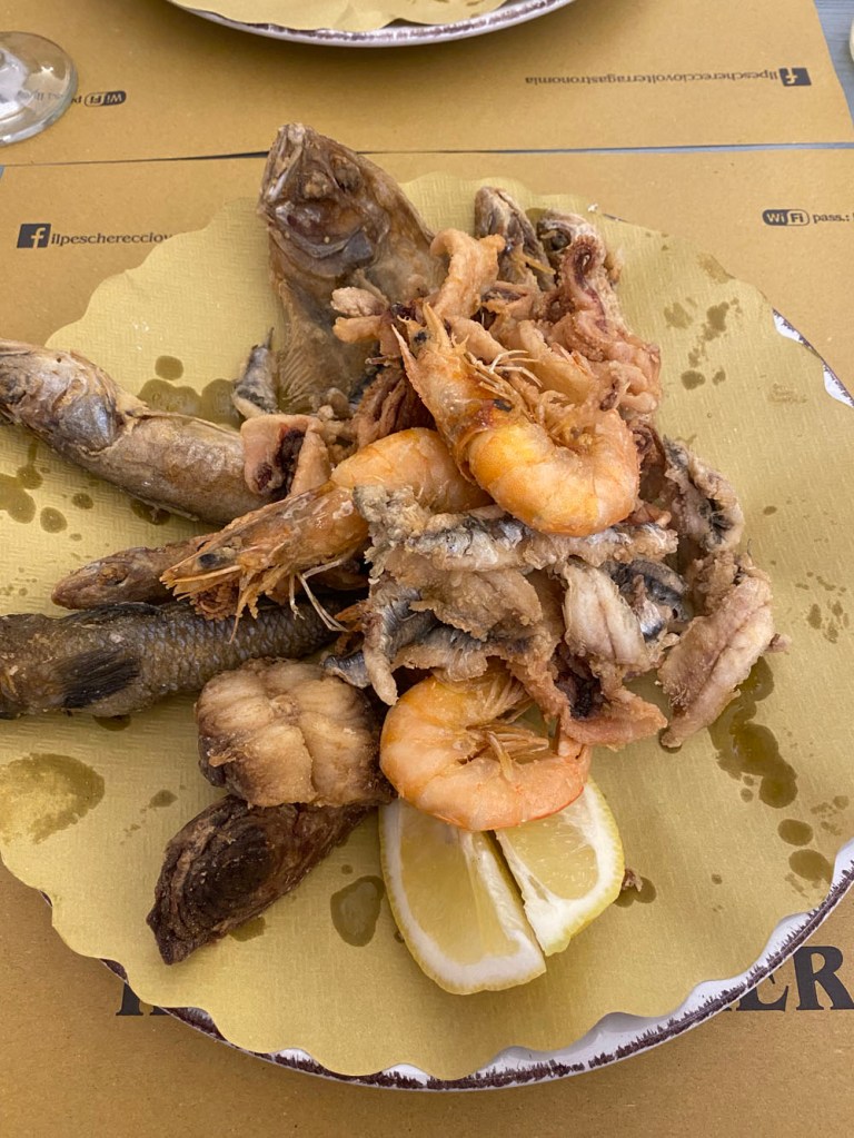 Carrying on the theme of eating in places we’ve never tried before, we tried Il Peschereccio for lunch. I had the high end fried fish mix, and Niamh the less expensive one. I think Niamh one that round. I think next time I try here, I’ll either go with the standard fritto misto or just a bit of grilled white fish. I had white wine to wash it all down – a rarity for me!