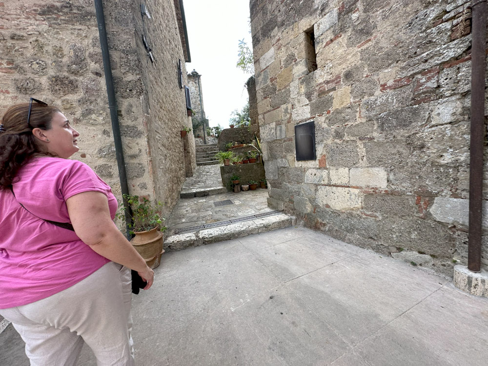 There is a teeny tiny town on a hill (what else is new?) about 25km southeast from Volterra, as the crow flies. We first noted it on the way to and from the larger town of Radicondoli when we visited it in 2018 – before I set this blog up, unfortunately. I looked it up on the map and it seemed like it might have some fab views of the surrounding countryside, PLUS it had a restaurant. I was sold, and vowed to visit it at some stage. Again, over the intervening years I’d noted it on signposts as we drove just about everywhere else in the vicinity. So, BOOM! five years later we were there.