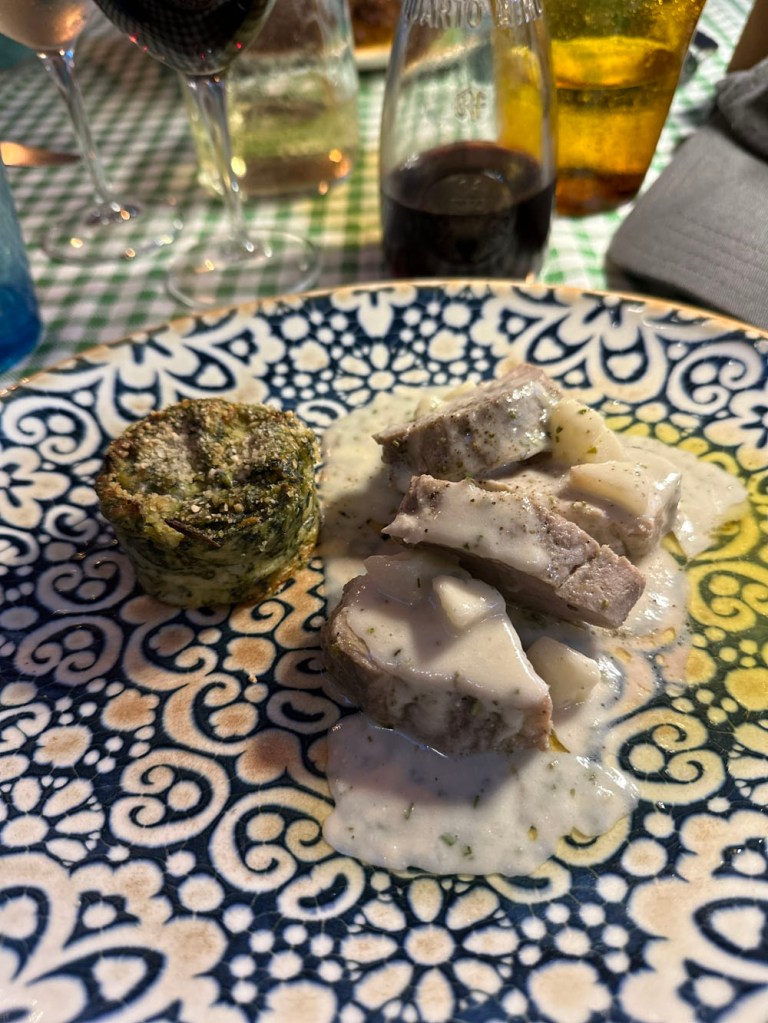 One meal to remember was in La Carabaccia in Piazza Settembre XX. It’s a lovely Tuscan place. Almost every place in Volterra serves Tuscan food, but this is a little different in that it has a very limited menu, which changes every day (fish on Fridays!), and is run by a couple of sisters in the front, with their mam in the back, cooking. The food is delicious, but do check if they’re open, as some of their opening times are erratic – and also do book in advance! It’s worth it. We ate there in the evening. The food was amazing – especially those pork medallions.