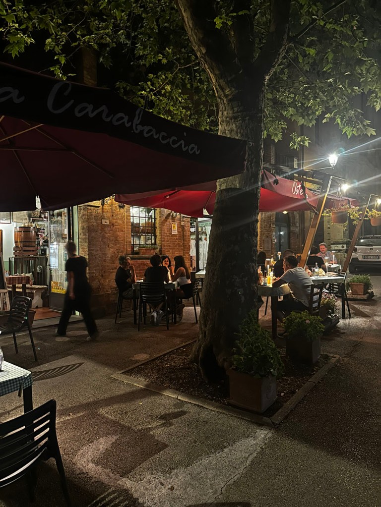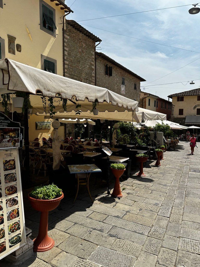 Once exercised, it was time to add the calories back, and so we went to check out some of the restaurants back in the main square. Niamh and I had experienced our first Tuscan slow dinner in that square in 2008. It was one of the most magical experiences we have ever had – Alto being our first real hilltown – read more about it here!
