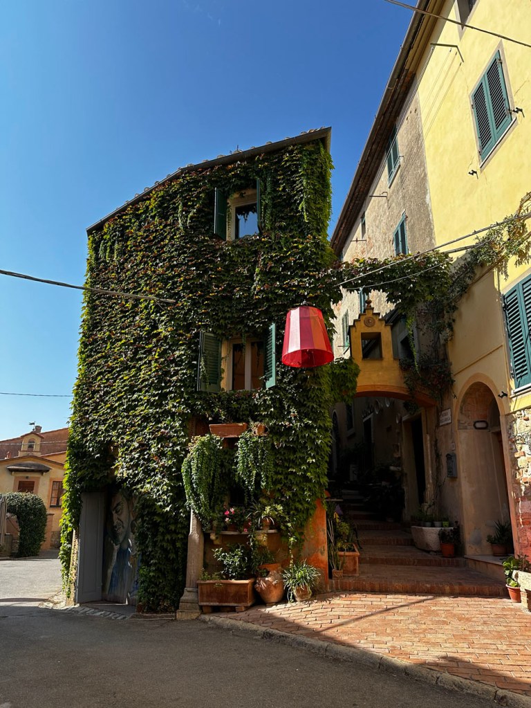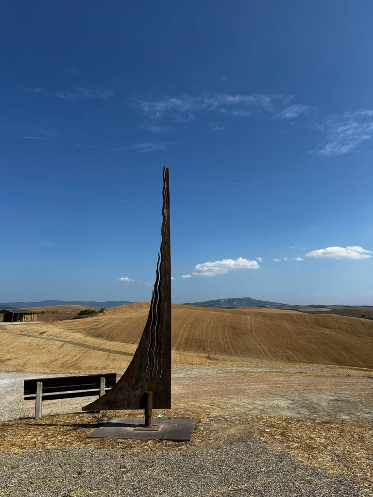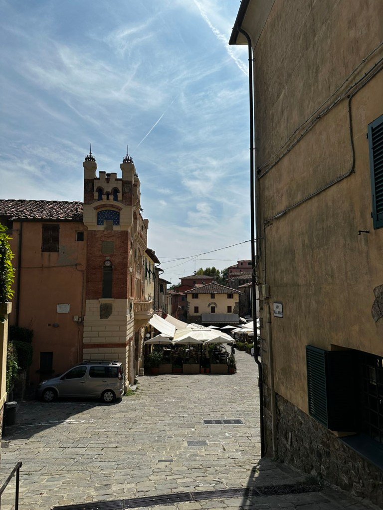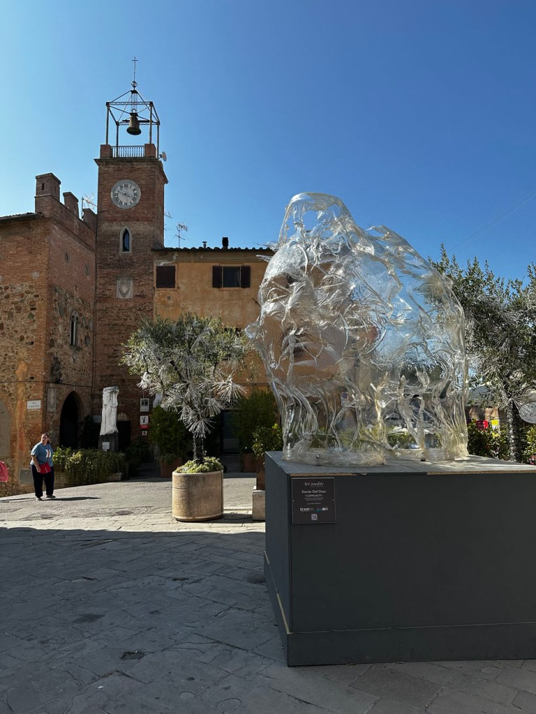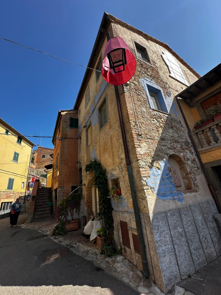 We drove and parked at Lajatico, where I had to use the bathroom again – not sure what I’d eaten that morning that was disagreeing with me, but these are things life throws at us to test us. It’s a gorgeous village, especially on a fine day – as it is, like Peccioli, something of an outdoor gallery.