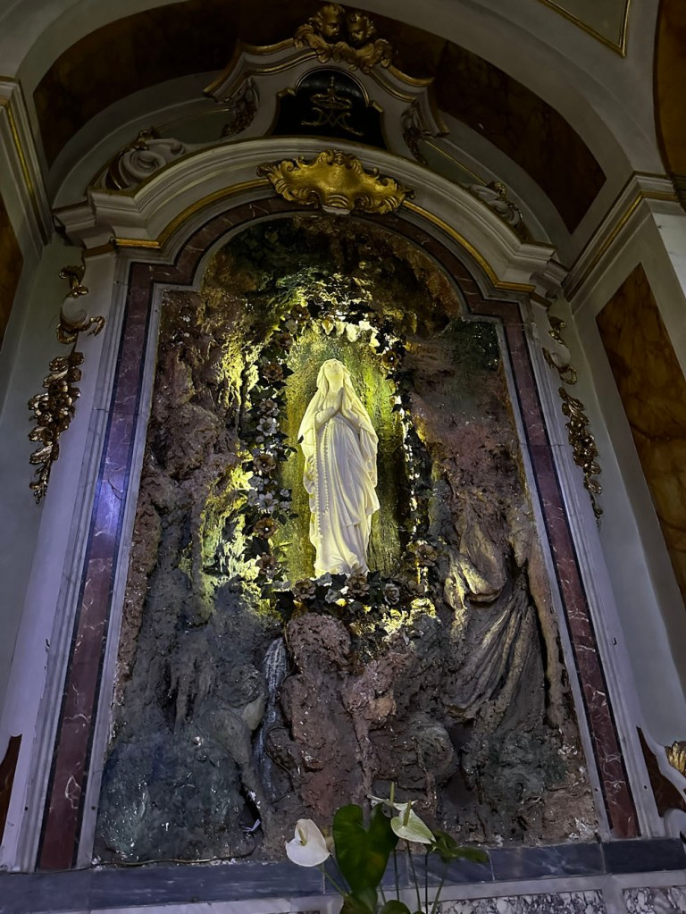 We had a walk around the town, and led the pack up to the church of St. Peter the Apostle. It was nice and cool inside, and relatively humble too. Right outside was a large WWII-era howitzer-style gun, along with types of small ordnance. What could this be? It turns out to be a shrine dedicated to Saint Barbara, the patron saint of (among other things) explosives! Apparently, she is Montecatini’s dedicated saint, although the church is for St. Peter.