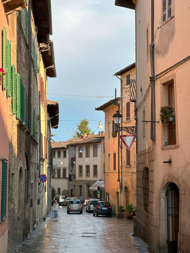 We drove to Colle, having to pause at a stop-go system tantalisingly close to Ristorante Arnolfo, BIS’ 2-Michelin-starred parent restaurant. We haven’t eaten there yet, but look forward to doing so. We wound our way to a car park just outside the walls of the old town, and took a couple of snaps.
