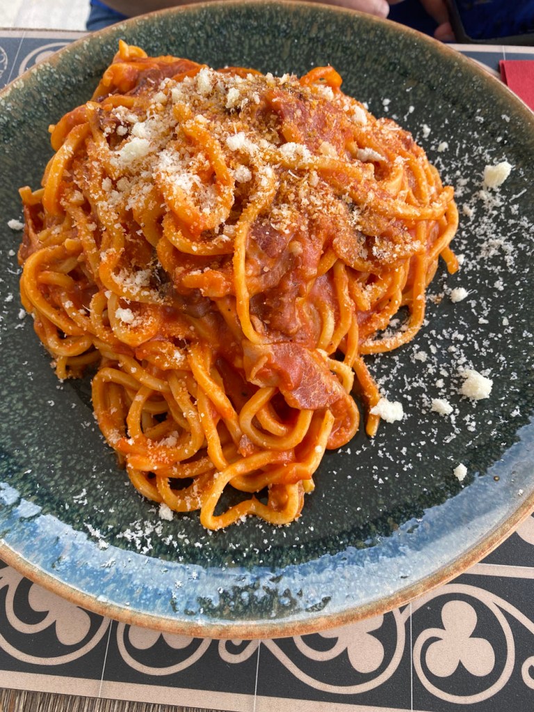 Well it began one of those days I think I have described before as a ‘living’ day – a holiday, but spent as a day practicing living as an everyday citizen, rather than doing anything special. Could I tell you exactly what we did up to our dinner out? Well, I had gelato and Niamh made some cacio e pepe. So, there we go!