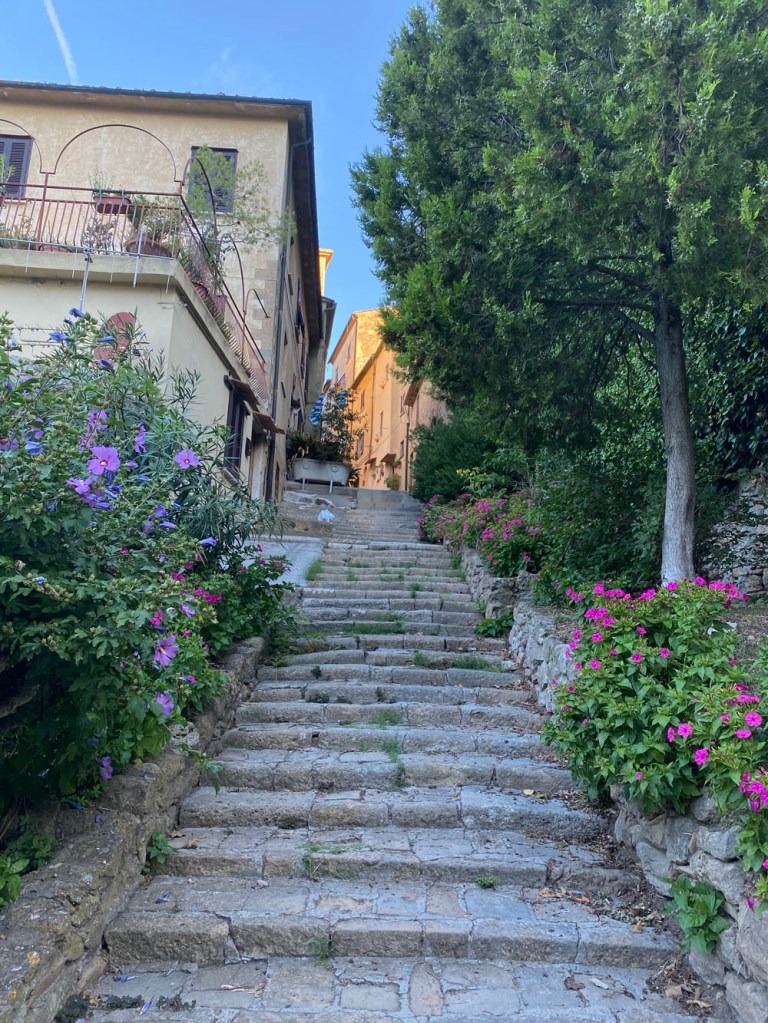 Goodness me! How did that sneak in there?Volterra is notoriously hilly.The Ladies’ Crafts Market