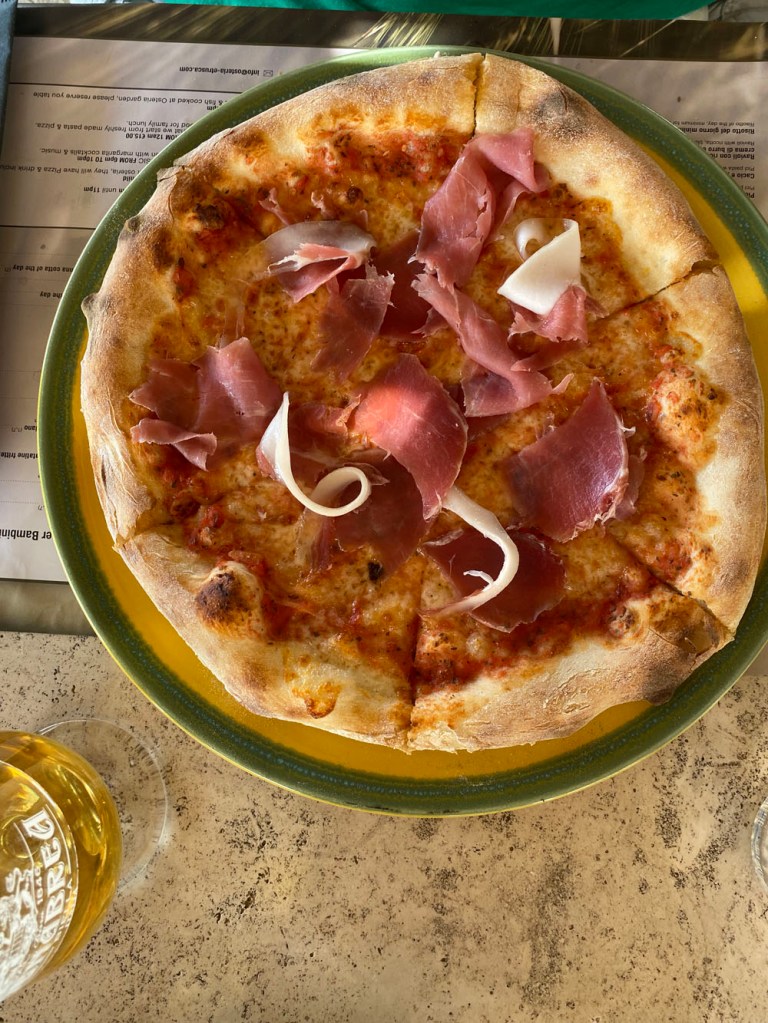 We chilled for a short while back at the apartment, tidied ourselves up and had yummy pizza in Pizzeria Ombra della Sera, along with a beer or two.