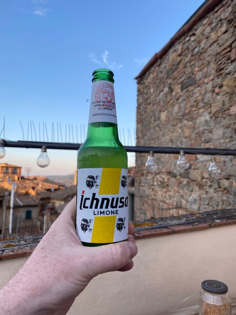 When we got home, rather than returning immediately to the apartment, we had a walk about the indoor Volterragusto stalls. Lots on offer here…. truffle products, beer, salumi, cheeses, wines, pasta… I bought a couple of truffle-based condiments/spreads and we each got a beer; me a stout, and Niamh an IPA. They were nice enough.