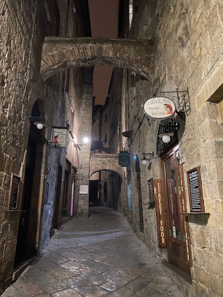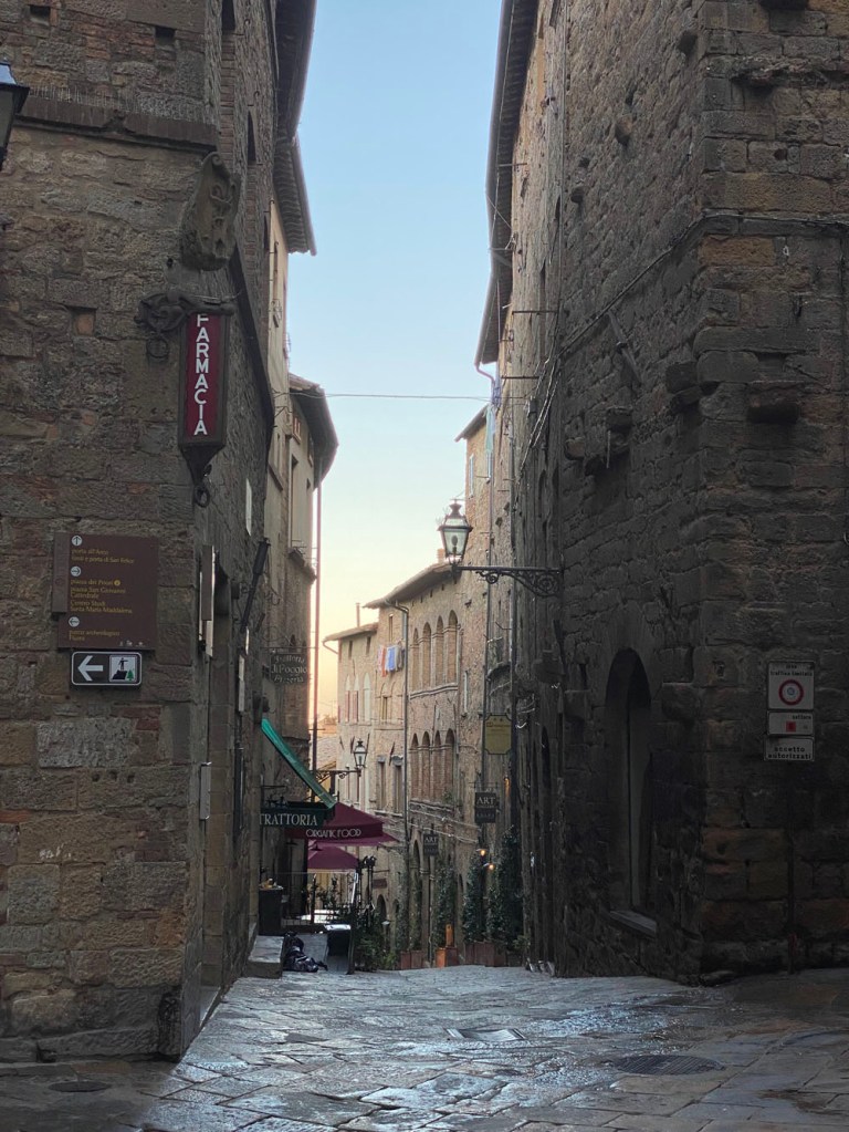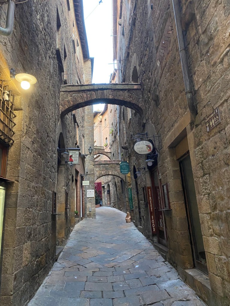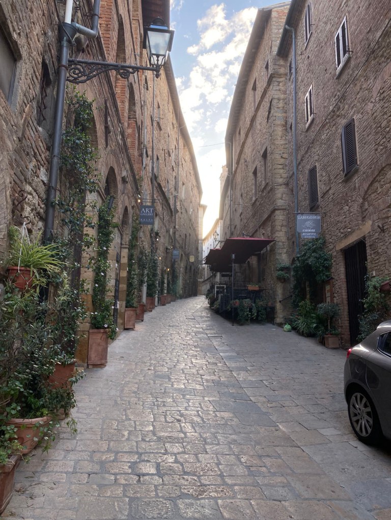 We lazed about it bit – we couldn’t do much else with full bellies. For a while now I had wanted to go on one of Annie Adair‘s tours of the town. She does them a couple of times a day, a few times a week. I waited outside her usual spot at the alabaster and artisinal goods store opposite the leather good shops at Piazza Martiri della Libertà. What Annie doesn’t know about Volterra probably isn’t worth knowing. Ordinarily, I would have been excited, but for some reason my anxiety had kicked in and I unfortunately didn’t have the wherewithal to reframe it. Them’s the breaks. So, Annie, if you’re reading this and were wonding why I was a litte quiet – that’s the reason. Nothing to do with you (or me, directly), it just rears its head from time to time. Anyway, it turns out I was the only one there today, so I excused her the tour.