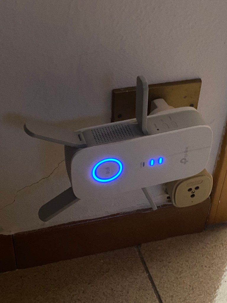 That evening, I had to do something that I’d put off for too long – finding a better place for the new super-sexy wifi extender we’d bought from Amazon Italy. We had it delivered to Ireland, then brought it back over to Italy! Anyway, with our previous extender, we were getting about 65mbps from the main wifi network, and a lowly 17mbps on our bedroom/bathroom extended network. It was barely enough to work with.