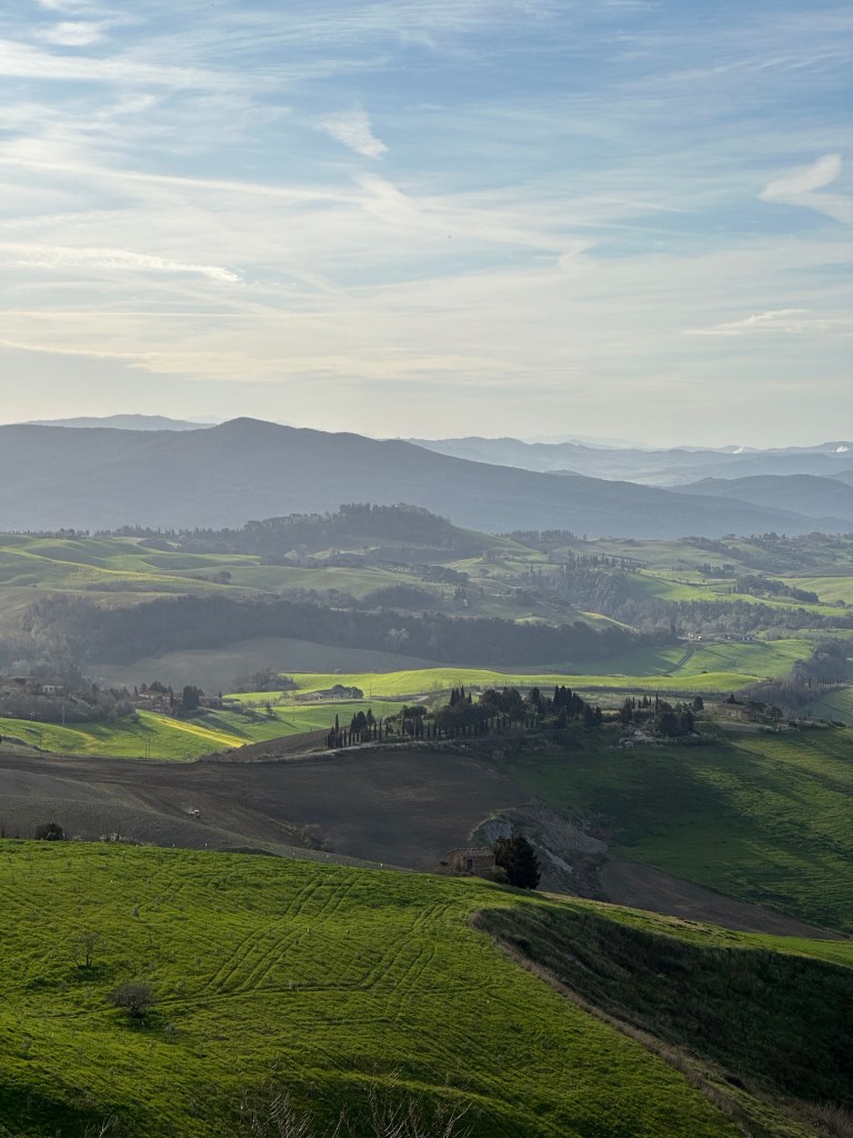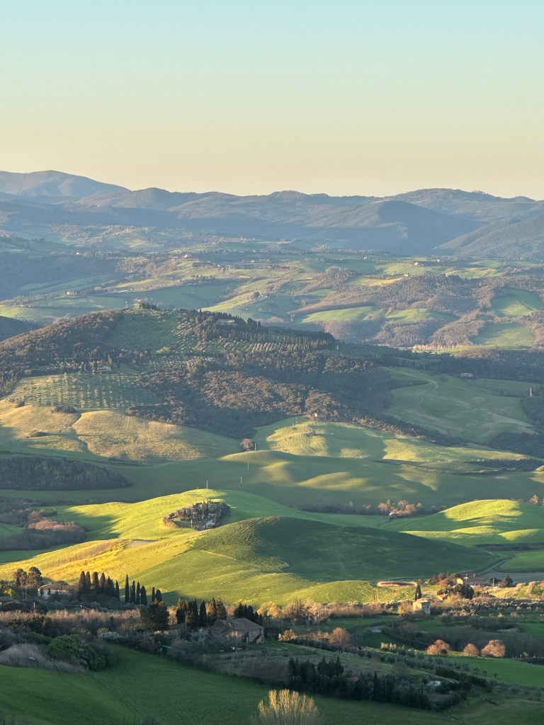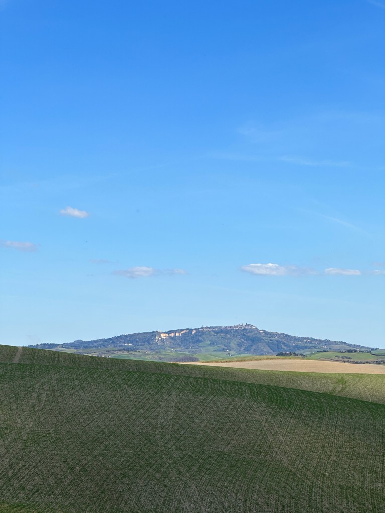 The theatre is the circular area on the left. In the distance, Volterra sitting on top of the butte!Those undulating hillsEpic