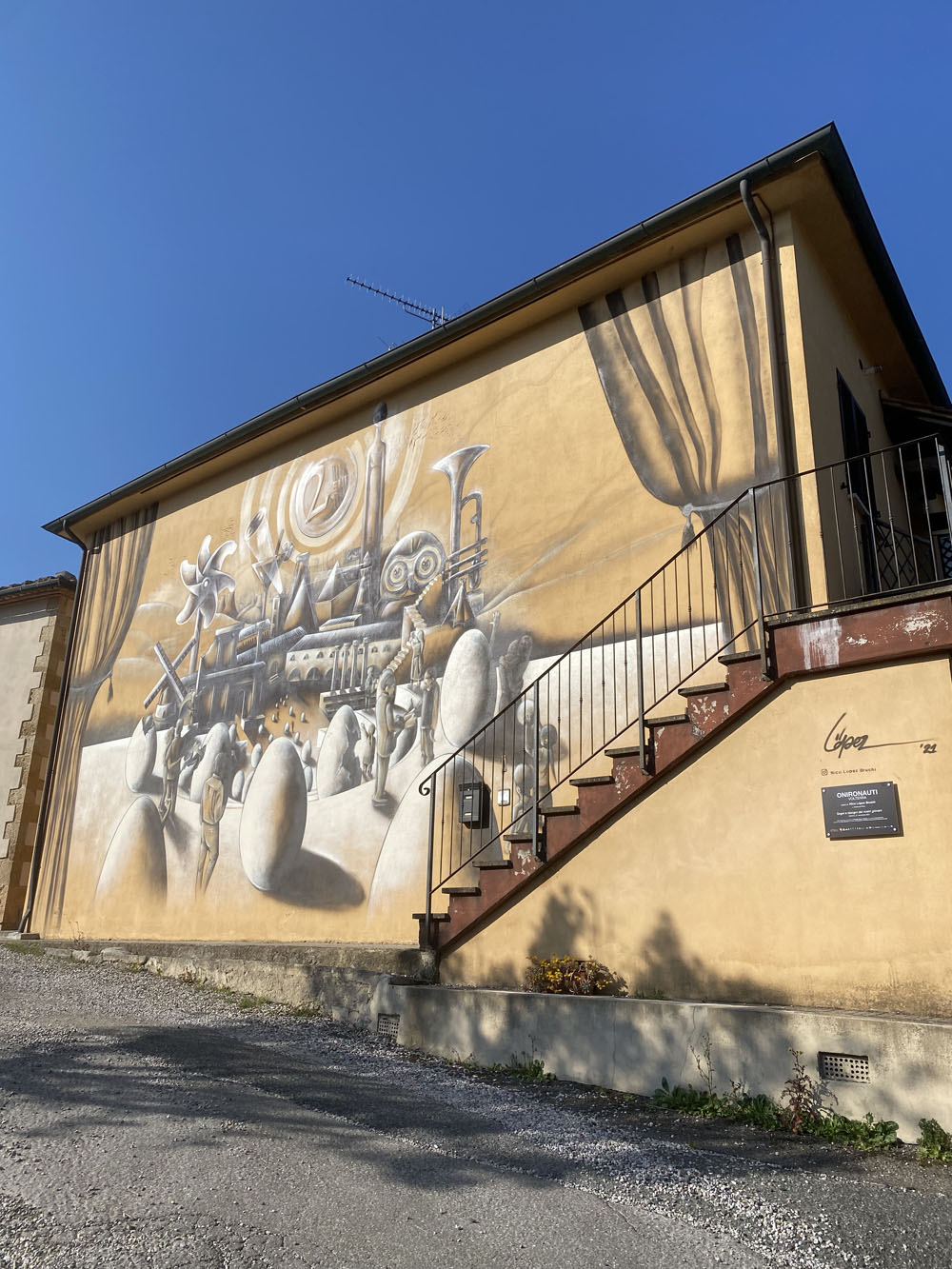 On the uphill slog back to the town, I spotted the mural below. I hadn’t seen it before – I think it was only painted recently, as I had walked past the place a bunch of times – it’s near the Conad supermarket. The artist’s name is Nico Lopez Bruchi, a self-proclaimed oneironaut (one who travels within dreams) and I think he has been responsible for a few murals around the town.