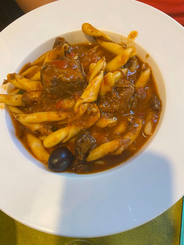 Then it was on to the first secondo, and the most contentious dish of the night. Certain among us Irish and English – those of us of a certain age – may remember offal being used much more frequently back home than it is today. In particular, I remember my grandmother having tripe with milk, onions and bread, and to this day I have rarely seen anything so gross. This is why I shy away from Trippa alla Volterrana and Lampredotto. For the ladies with us today, it was tongue. They couldn’t do it. In fairness they gave it a quick go, but pushed their plates towards me and Niamh’s brother-in-law. We both yummied down both portions!