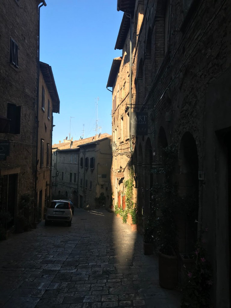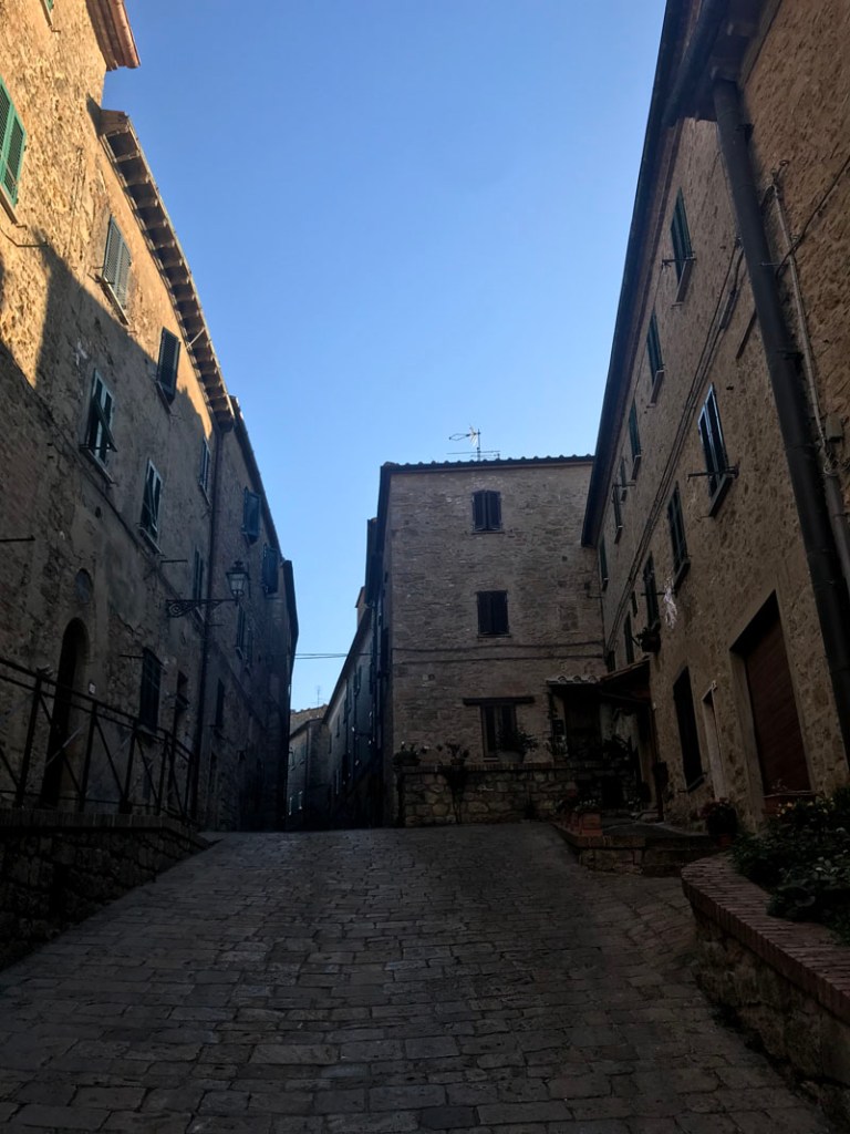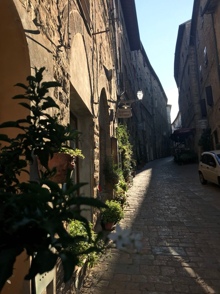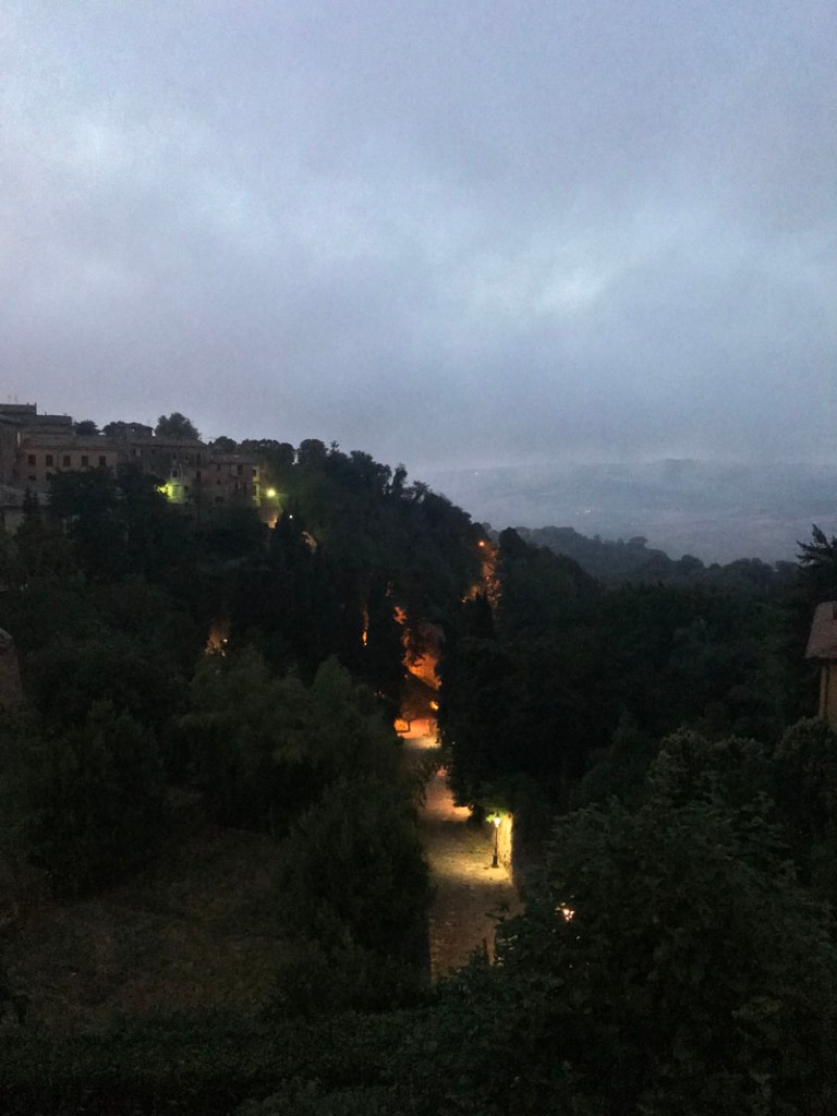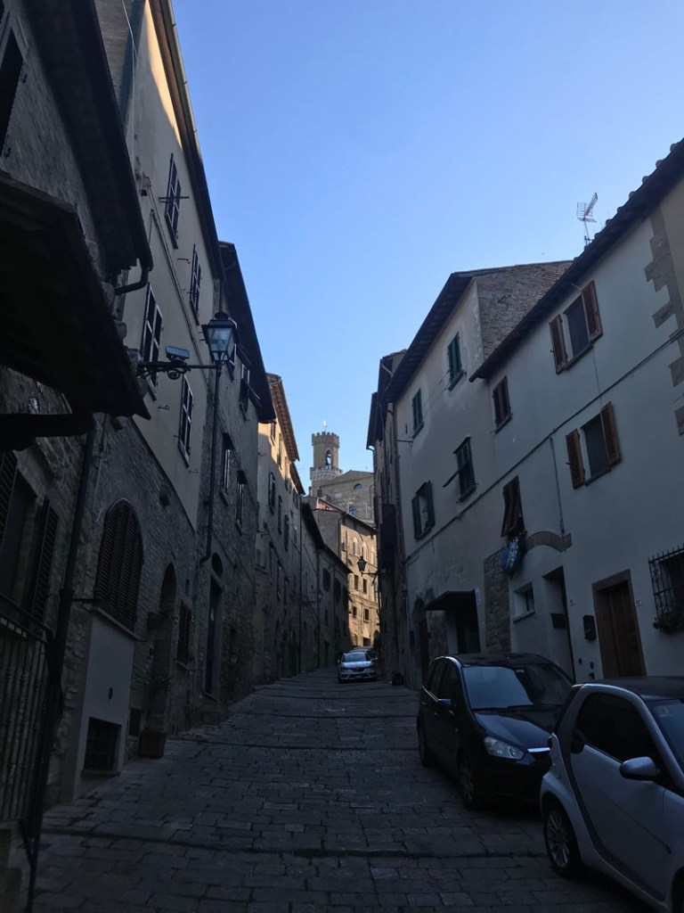 Now for my fondest memory! We went midweek drinking with our friend – who usually doesn’t drink much. We’d had aperitivi in Volaterra (see one of the pics above), and decided that we were giddy enough to carry it on back at our apartment. We stepped outside and the heavens opened. We stopped at Fabio’s, and picked up some wine. Then it began to seriously pour, and so I took this little bit of video on the way. And it was good times. A core memory of Volterra for me now. Our poor friend had a 36-hour hangover after this night – we worked with little problem the next day!