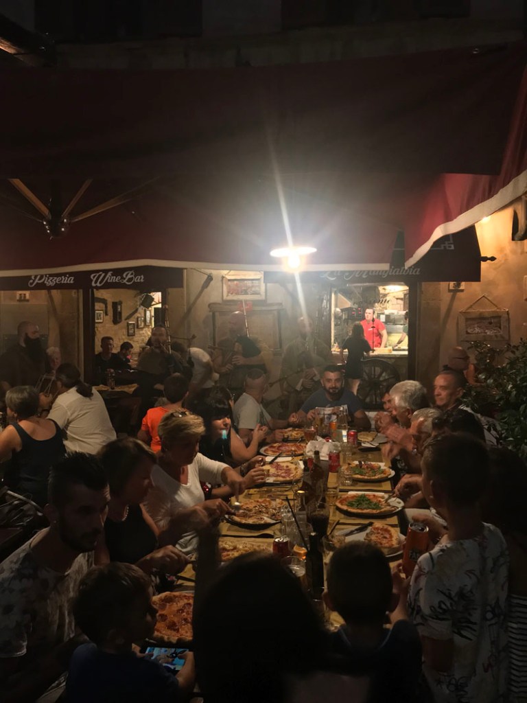 We had a drink in the sun, but Marie and Lorenzo were still delayed at the other town – but we were advised to go to the restaurant on the corner of the square. It’s currently called Aurora Taverna Toscana Osteria – but might have been called otherwise back then. We asked for a table and Marisa told them that we were with Marie and Lorenzo and that there’s a table for six booked (they were expecting another friend from New York).
