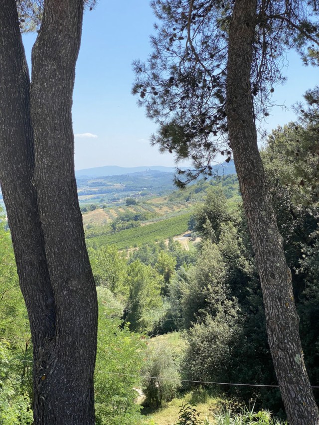 We skipped town and, solely for our visual delight, drove into the best parts of the Val d’Era. And it is so lovely – it’s comparable to Val d’Orcia on a good day. That day, given the time of the year it was, the sky was cloudy, but the viewing distance was good. The problem with ambient light and no shadows is that you really don’t get the true shape of the hills or, sometimes, the depth of the vista. Plus I spoiled these shots by putting myself in them. But here they are anyway.