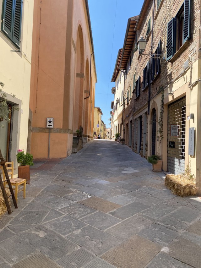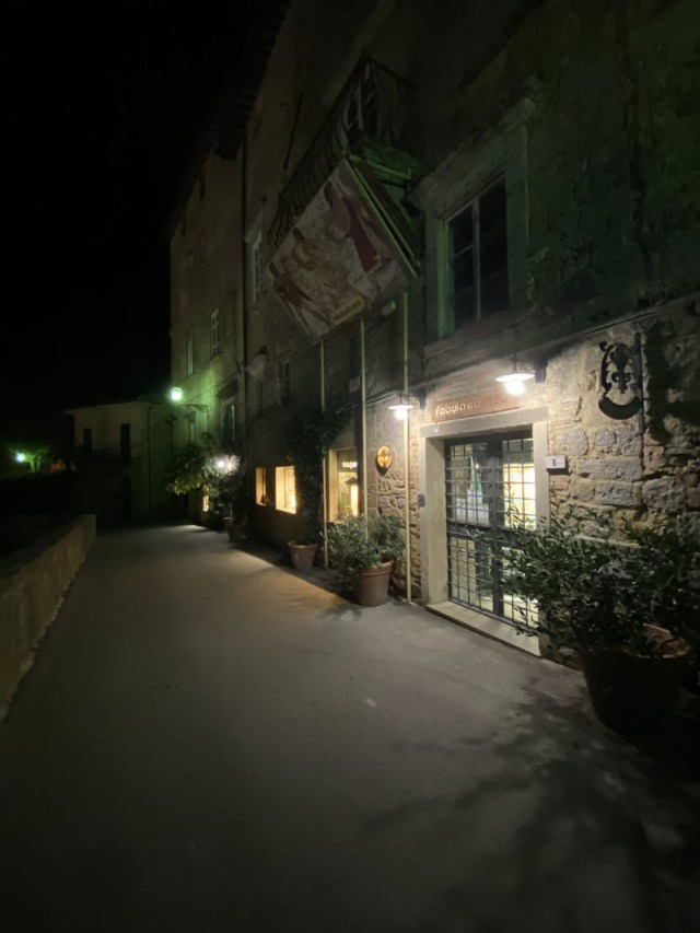 Rather than heading towards Volterra, though, we took an unfamiliar route towards Montaione. We had been in touch a virtual load with Tutto Torna Antique’s Emma. We arrived while she was closed for riposo, so we had a drink and nibbles in L’Antica Vineria Vanni. Nice place – I was complimented on my Italian, which always both mortifies and butters me up!