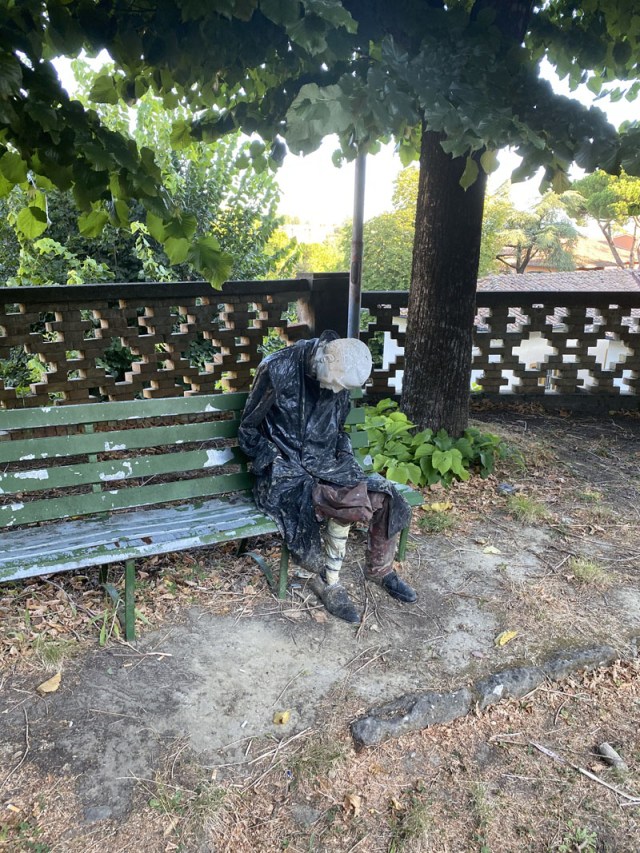 We settled in for the afternoon. I had a short nap, and afterwards went out alone to the Ex Manicomio (abandoned psychiatric hospital) exhibition they had on in town (Niamh went on her own walk). I’ve already written a little about the facility here. As well as some general stuff on the hospital, they focused on one of the patients: Oreste Fernando Nannetti, also known as NOF4, who, using only a belt-buckle, wrote his personal exegesis on hospital walls, over hundreds of square meters. There’s a brilliant article in English about him here. It speaks of a man who must have been fabulously imaginitive and intelligent, but whose skills were harnessed in an incorrect and unjust way.