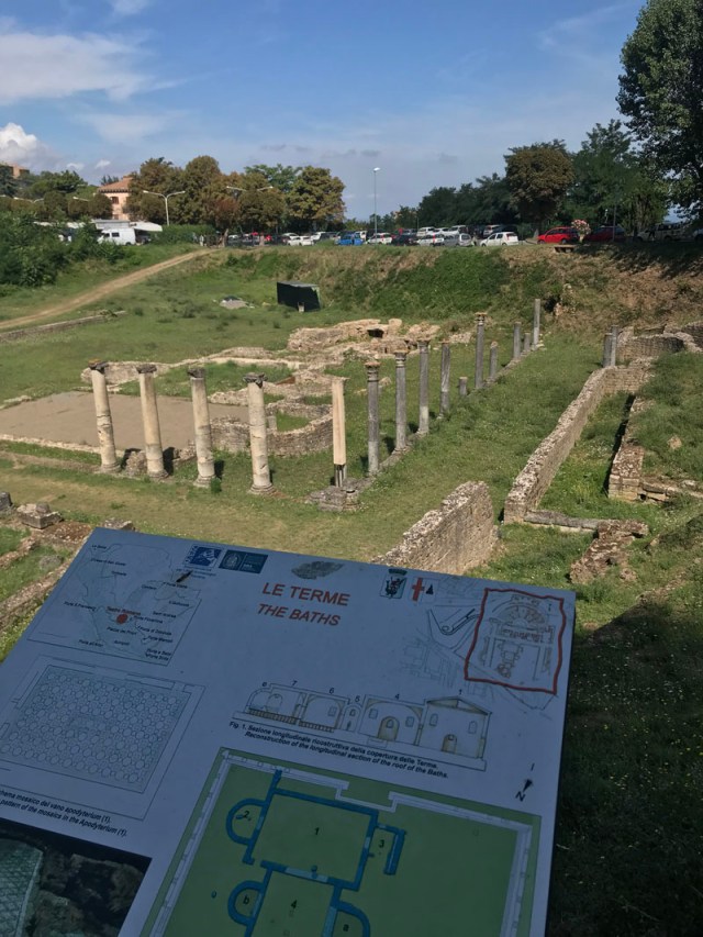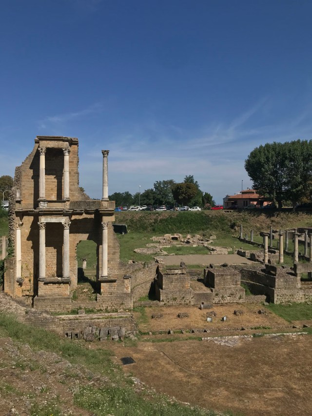 Our guest took their time to explore a little more around the town, while Niamh and I lounged around at home. We went out ourselves after while for a short walk and parked ourselves a while in the main piazza, people-watching. We met up again with our guest (sort of) at the Roman Theatre ruins.