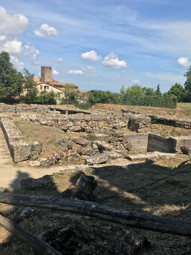 Would our guests fancy a look-see at the new archaeological site of the newly found amphiteatre? Turns out the answer was ‘yes’! We headed through the Porta Fiorentina, and wandered down towards the cemetary. You can’t enter the dig site itself without a a guide, but we were able to have a good look anyway.