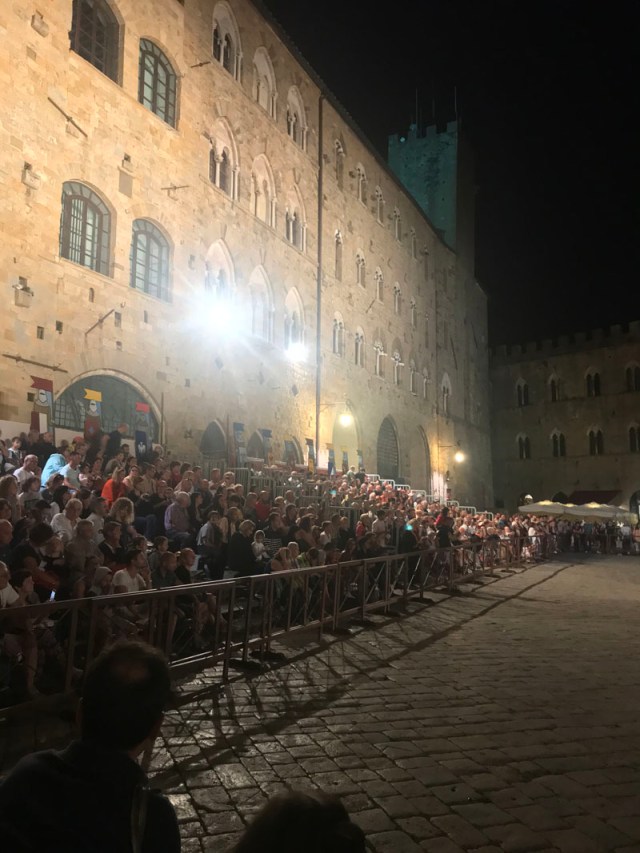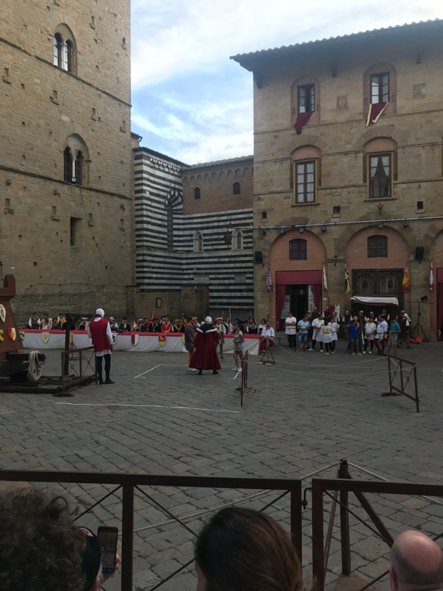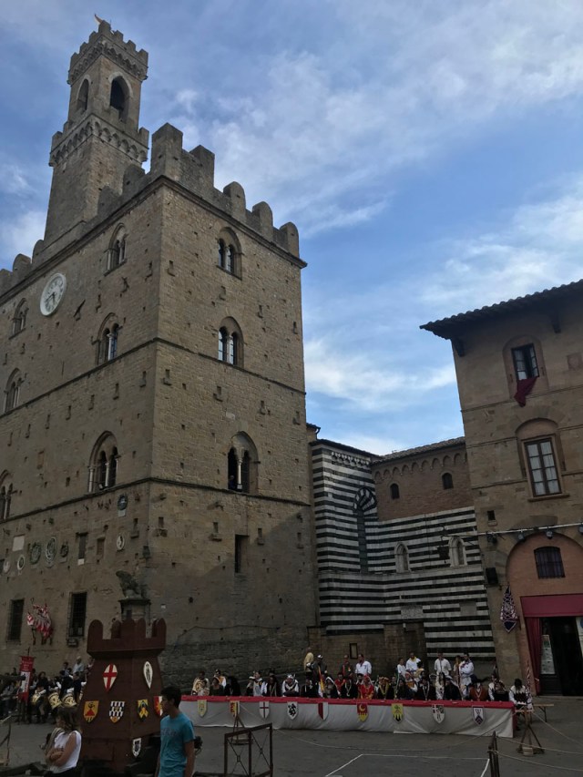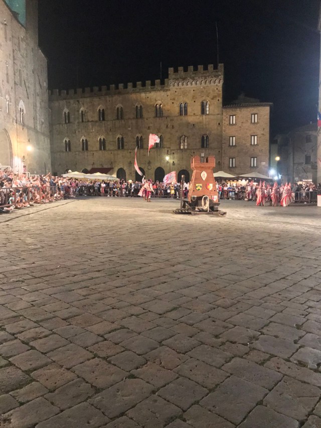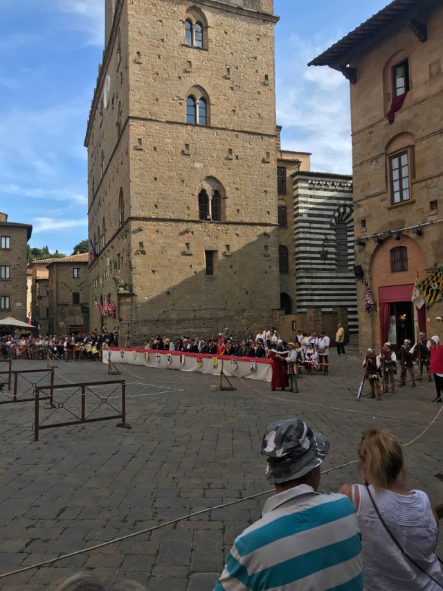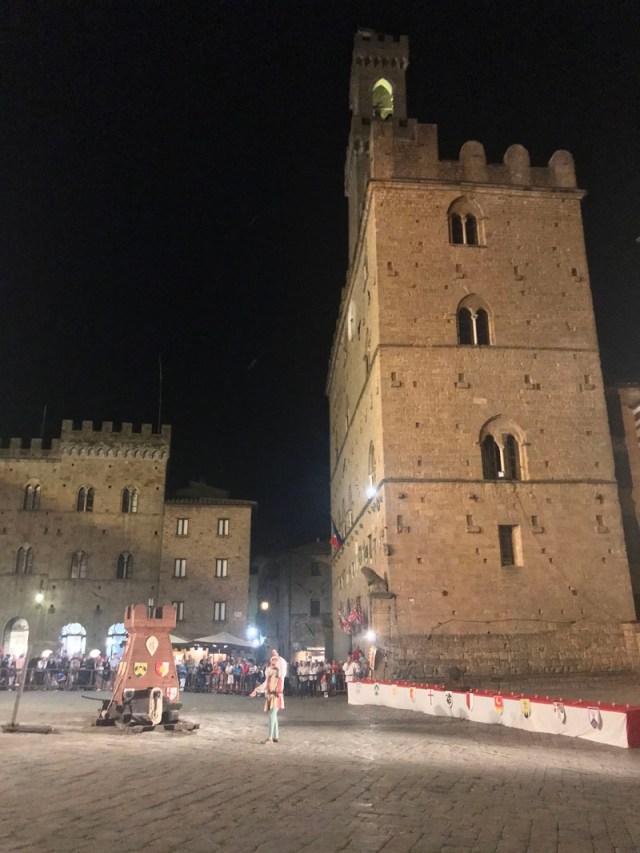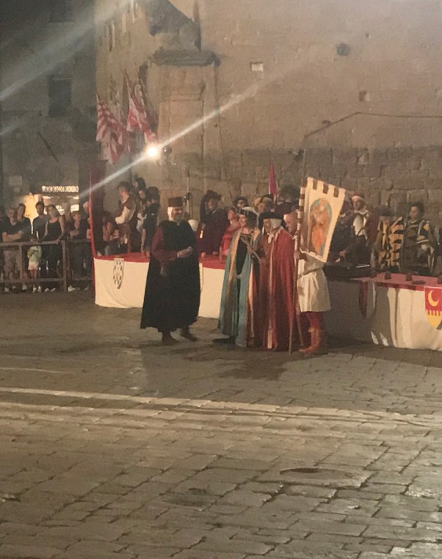 I’d forgotten that there would be some medieval fair stuff happening this evening.  I wrongly thought that it would be a repeat of last week, and hurriedly texted our guest to adviser her to make her way to Piazza dei Priori (the main square).  I got dressed and lashed up there myself.