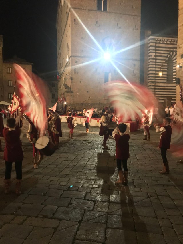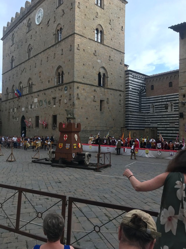 Once again, it was a knock-out affair, with semi-finals and a final.  The sbandieratori (flag jugglers) put on a couple of shows before the semis, and the final itself.  A fun evening, although we didn’t get bleacher seats and so were a little foot/backsore after nearly two hours of standing in the same spot.