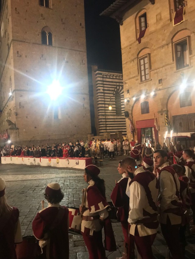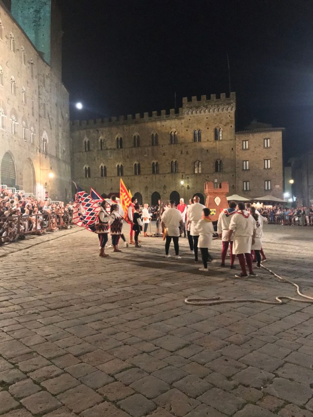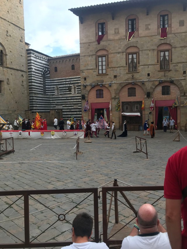 We went to the square, just in time to catch the entrance of the dignitaries, combatants and the teams representing their contrade for the Palio del Cero.