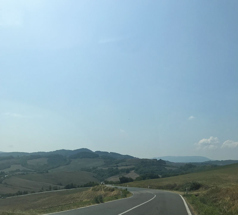 We got back in the car, which scalded both bums and hands, and made our way to Casole d’Elsa, taking snaps as we went.