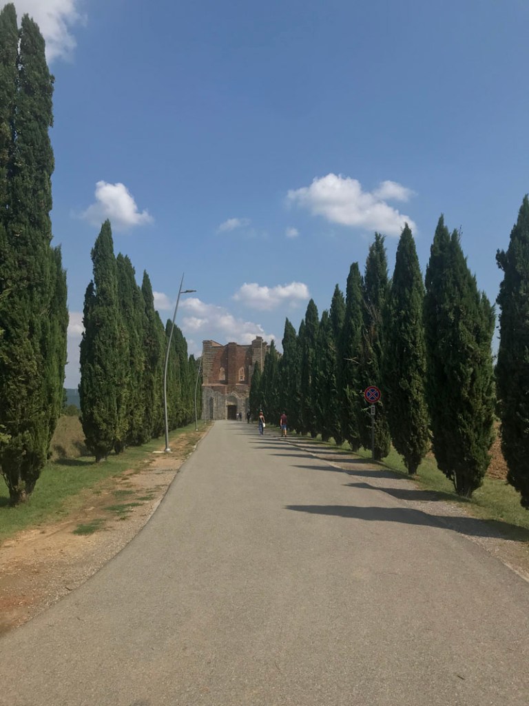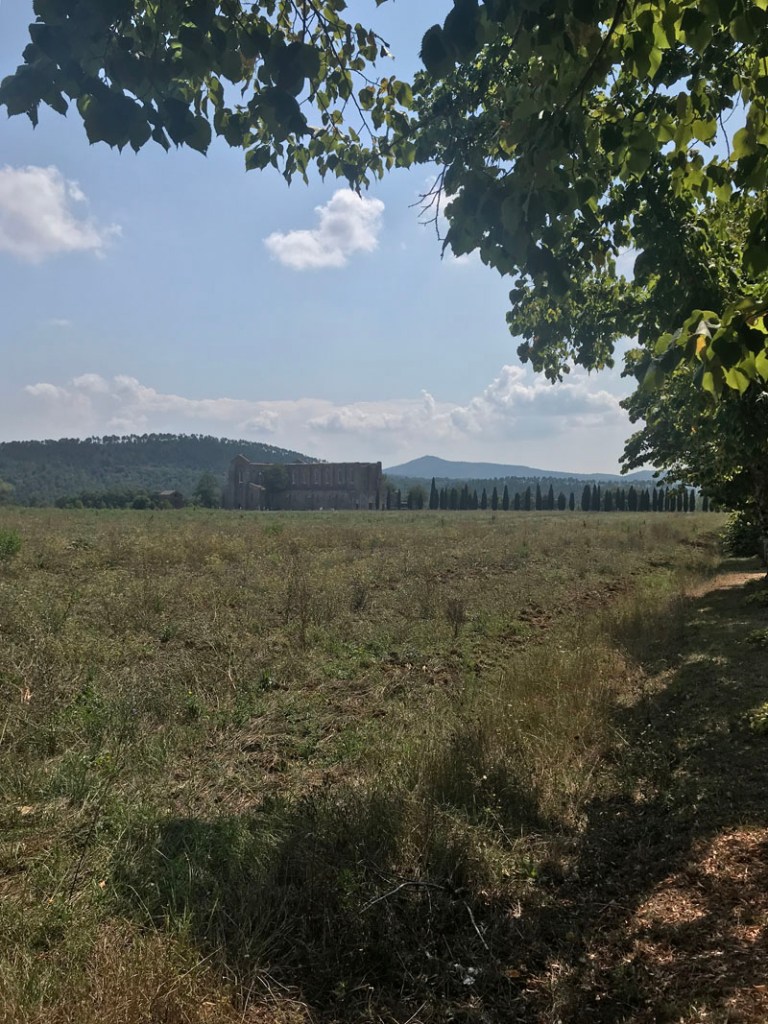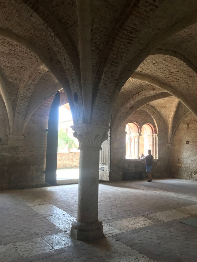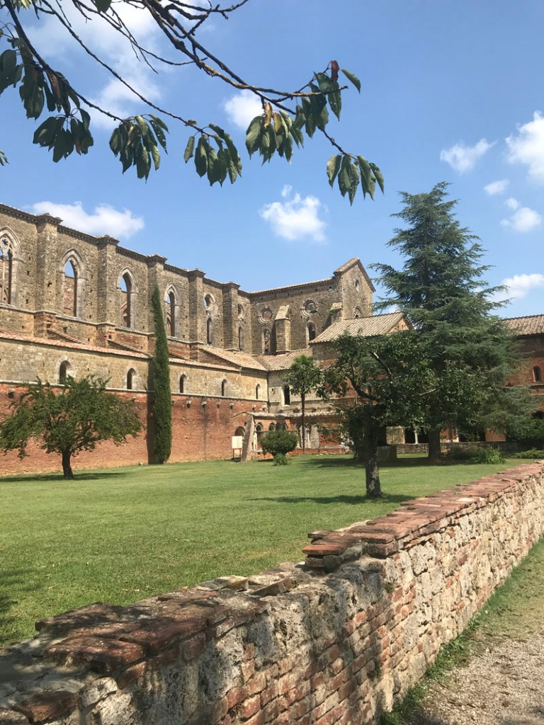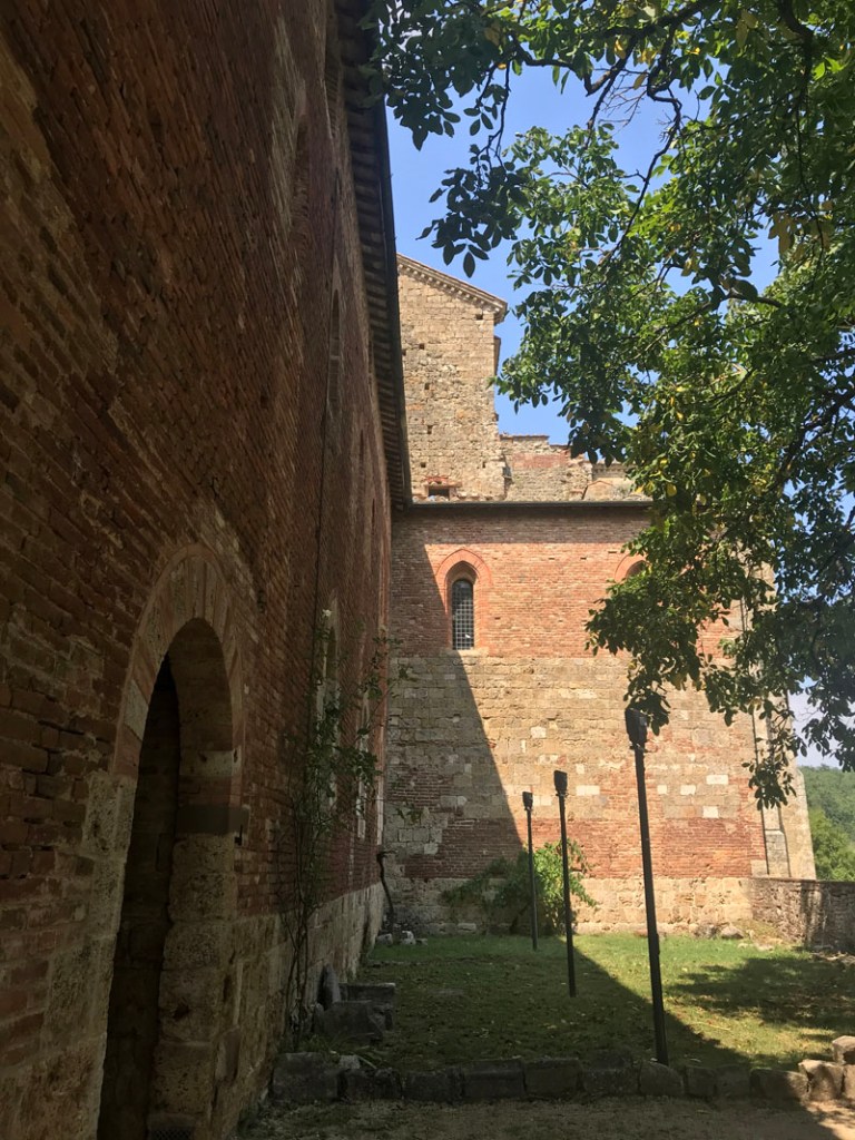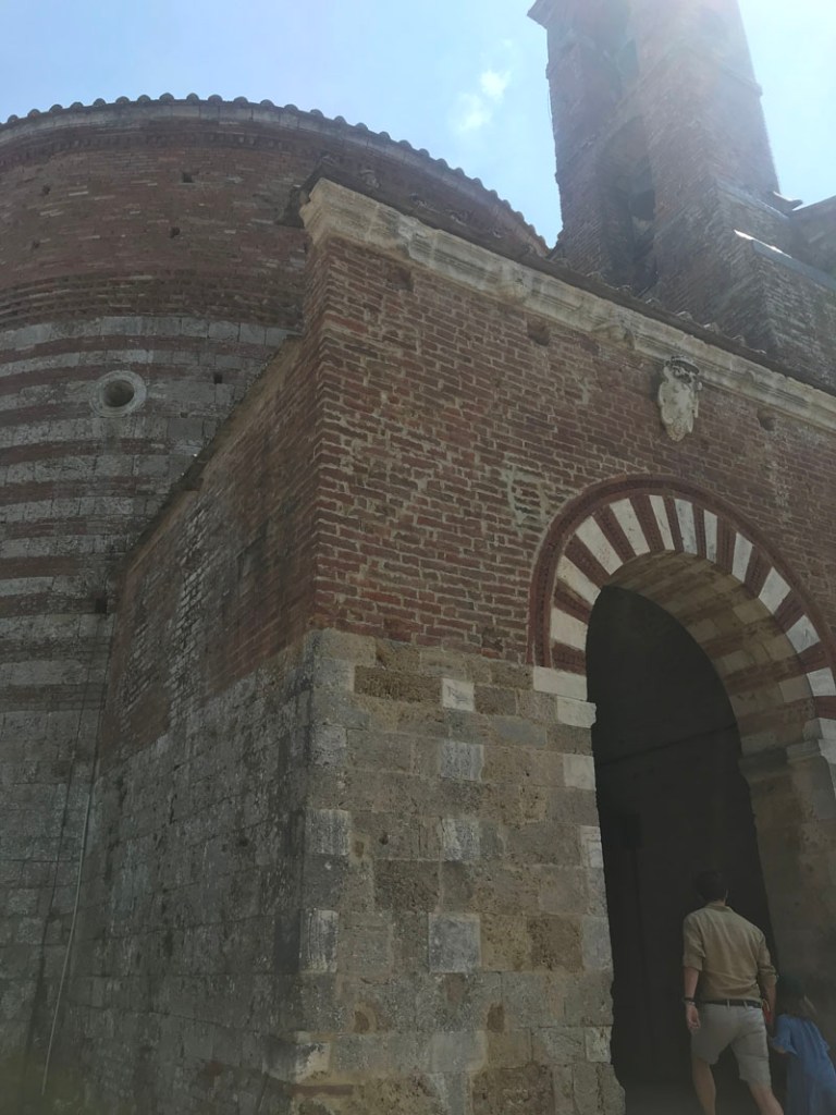 You might be able to catch the town of Chiusdino in the background of the pic above.  In addition to the rotunda, you have the ruins of the old Cistercian abbey of San Galgano, along with a couple of places to eat.  We both had pici with different sauces (Niamh’s was nicer), and explored the abbey (€4 per person).  We got there just in time, as guests began to arrive for the wedding of an English couple as we were leaving.  Hey, the ruins are nice, but they’re no Holy Cross Abbey.