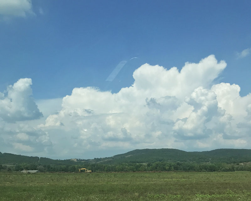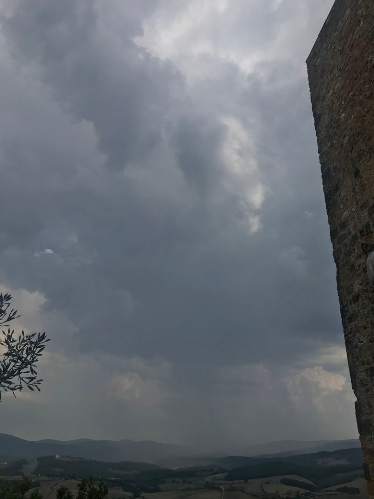 As you can see above, we got a fair warning that the weather was on the turn, and so hightailed it back to Volterra, where it began to peal thunder when we got out of the car.  It takes about 7 minutes to walk from the carpark to our apartment, and the thunder was constant.  It would be nice and safe indoors, though.
