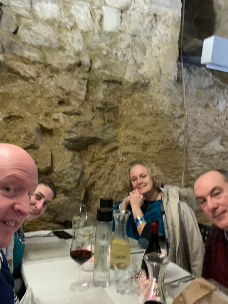 Still, aside fromt that, it’s a really nice environment – it’s not often you get to eat in a near 2,000 year-old cellar! We’d eaten in the cellar a couple of times before, and so were not expecting the cold. Anyway, we got settled-in, a couple of us throwing on a scarf or light jacket as an extra layer and presented our gift. Robbi came back down to thank us, but said “Next year two, eh?” which made us crack up. Fortunately, the tube of sweets have separate bags of truffles within, so sharing wouldn’t be a problem.