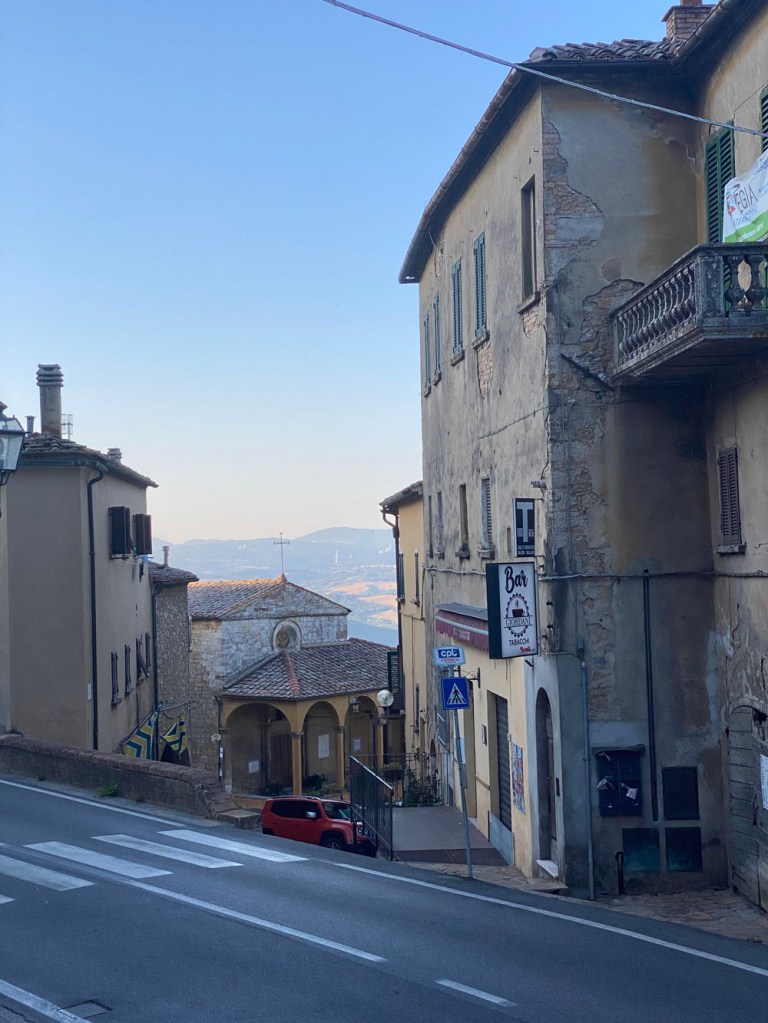 Day 2 The next day began with a morning explore and coffee, and a wander to the main square (Piazza dei Priori). We bought some salumi and cheese at this newish store on Via Gramsci (Bottega Toscana), and found it to be about 10-15% cheaper than the cheese store just around the corner from it. We had our coffee (in my case a hot chocolate) and pastry, and found something peculiar in the square when we went there afterwards.