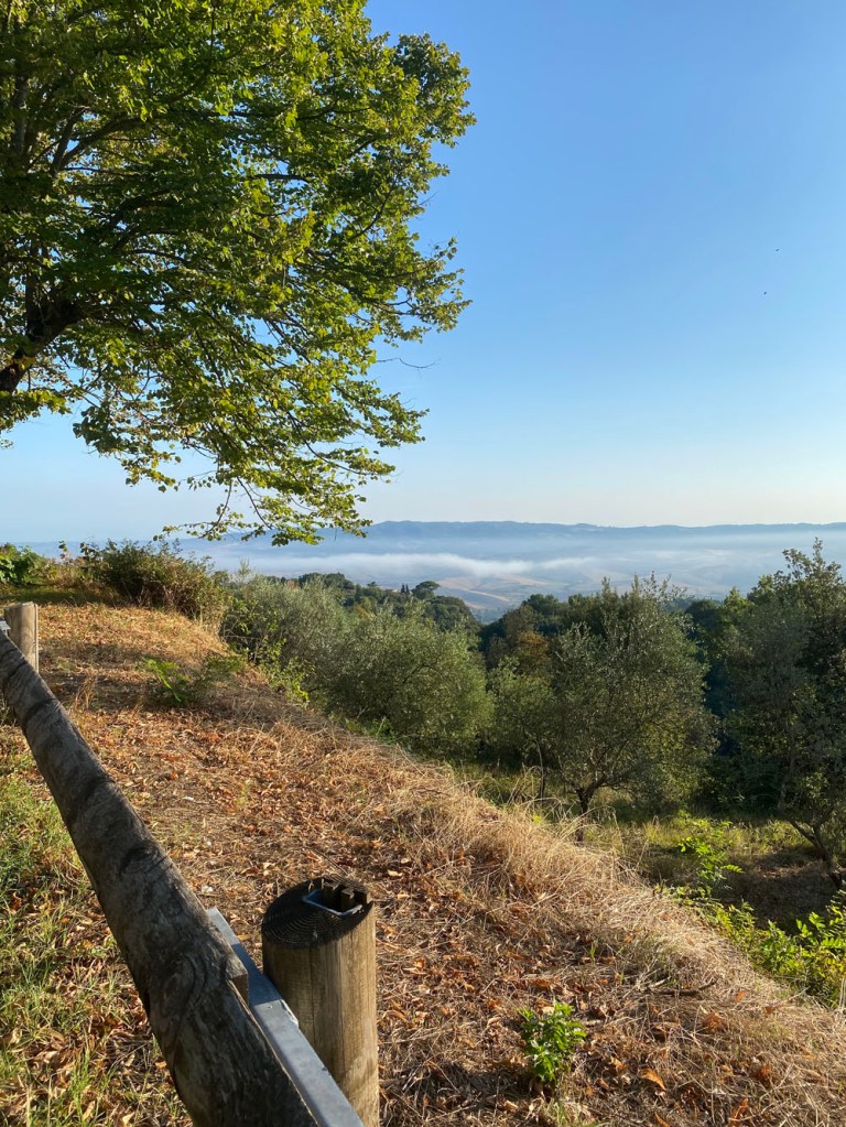 The weather. It was foggy in Volterra, then we got further down to a corner of the Val d’Era where it was relatively clear, but the climb began again into more fog. Well…. dang! Then came the rain, which further reduced visibility. It’s a shame, as some of the countryside is beautiful – so reserve it for a sunnier day if you ever wish to explore.