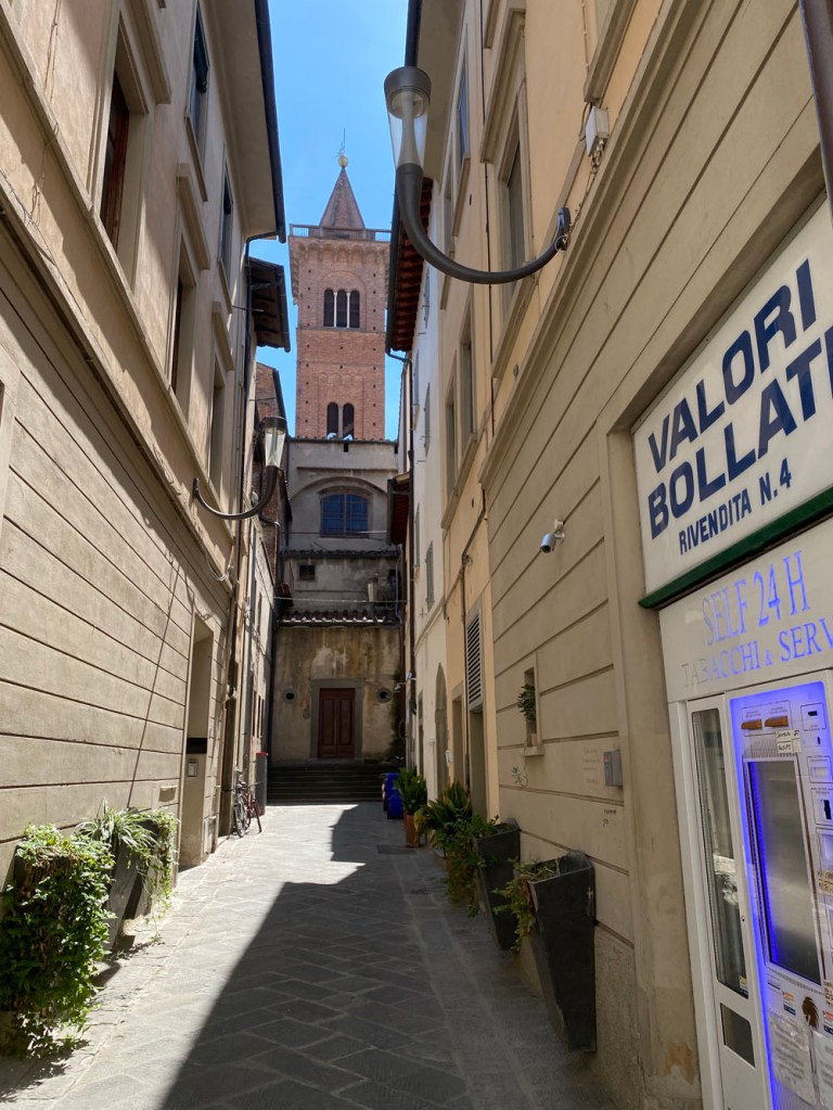 We wandered some more and I kinda fell a little in love with old Poggibonsi. It was very sleepy when we visited it, but there were places to eat and drink and I’d say it turns into a lively enough place during the evening. We found more alleys, another cubic friend and then a lovely circular piazza. All the benches in the shade were taken, and at one stage we had a little race with a local to grab a recently vacated seat – we lost; probably for the best.